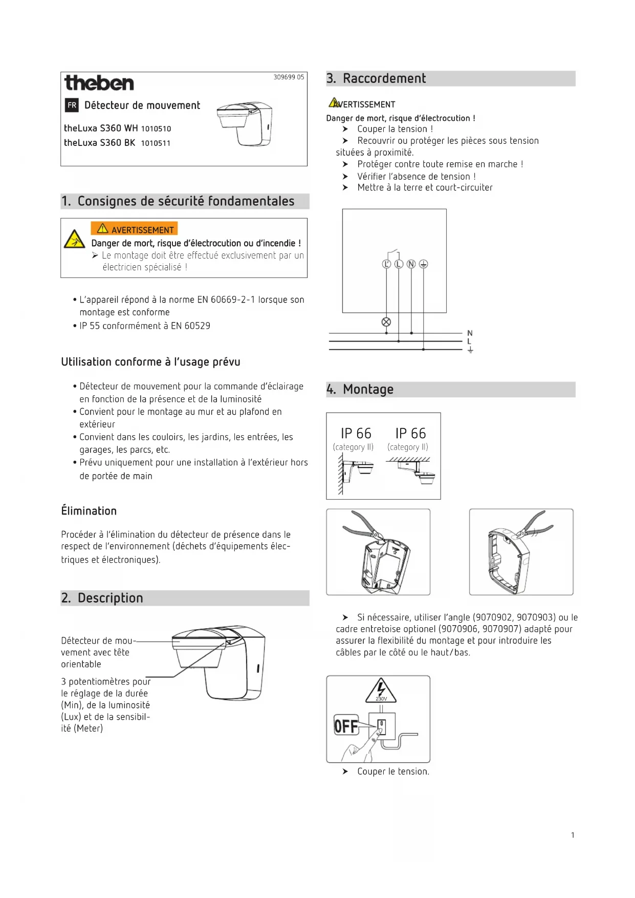 TheLuxa S360 BK - Détecteur de mouvements THEBEN - Notice d'utilisation et mode d'emploi gratuit