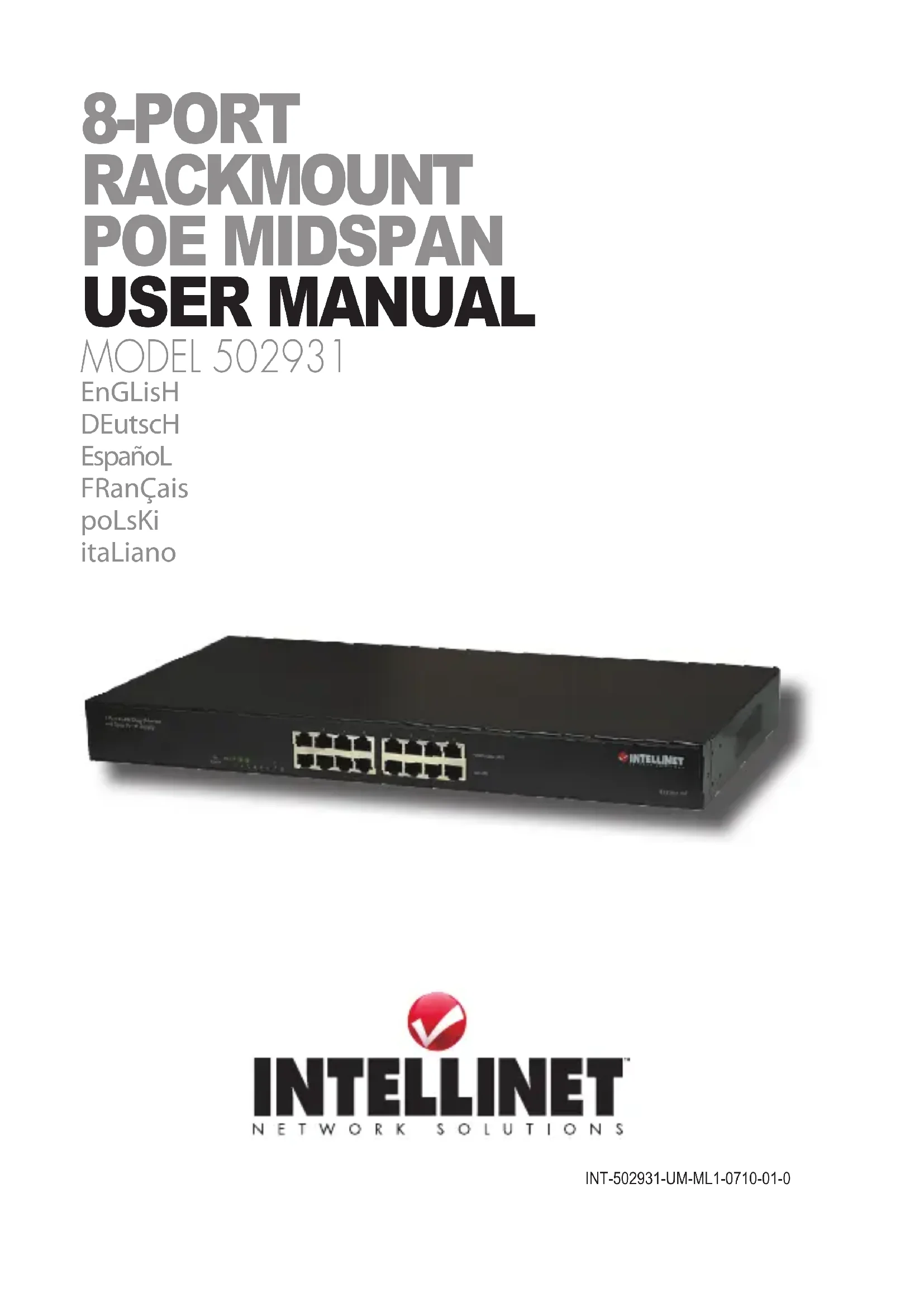 Merci d'avoir acheté le Commutateur rackable PoE Midspan 8 ports INTELLINET NETWORK SOLUTIONS, modèle 502931. Pour la fiche technique avec les spécifications complètes, visitez www.intellinet-network.com.