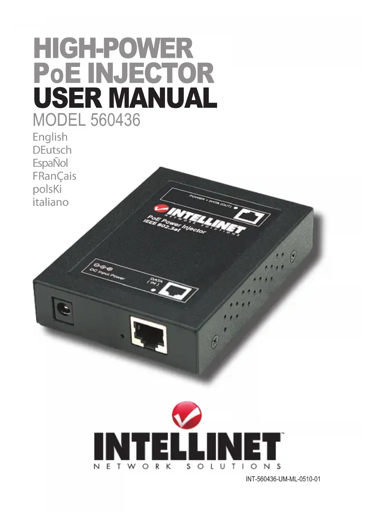 Merci d'avoir acheté l'INTELLINET NETWORK SOLUTIONSTM Injecteur PoE haute puissance, modele 560436.