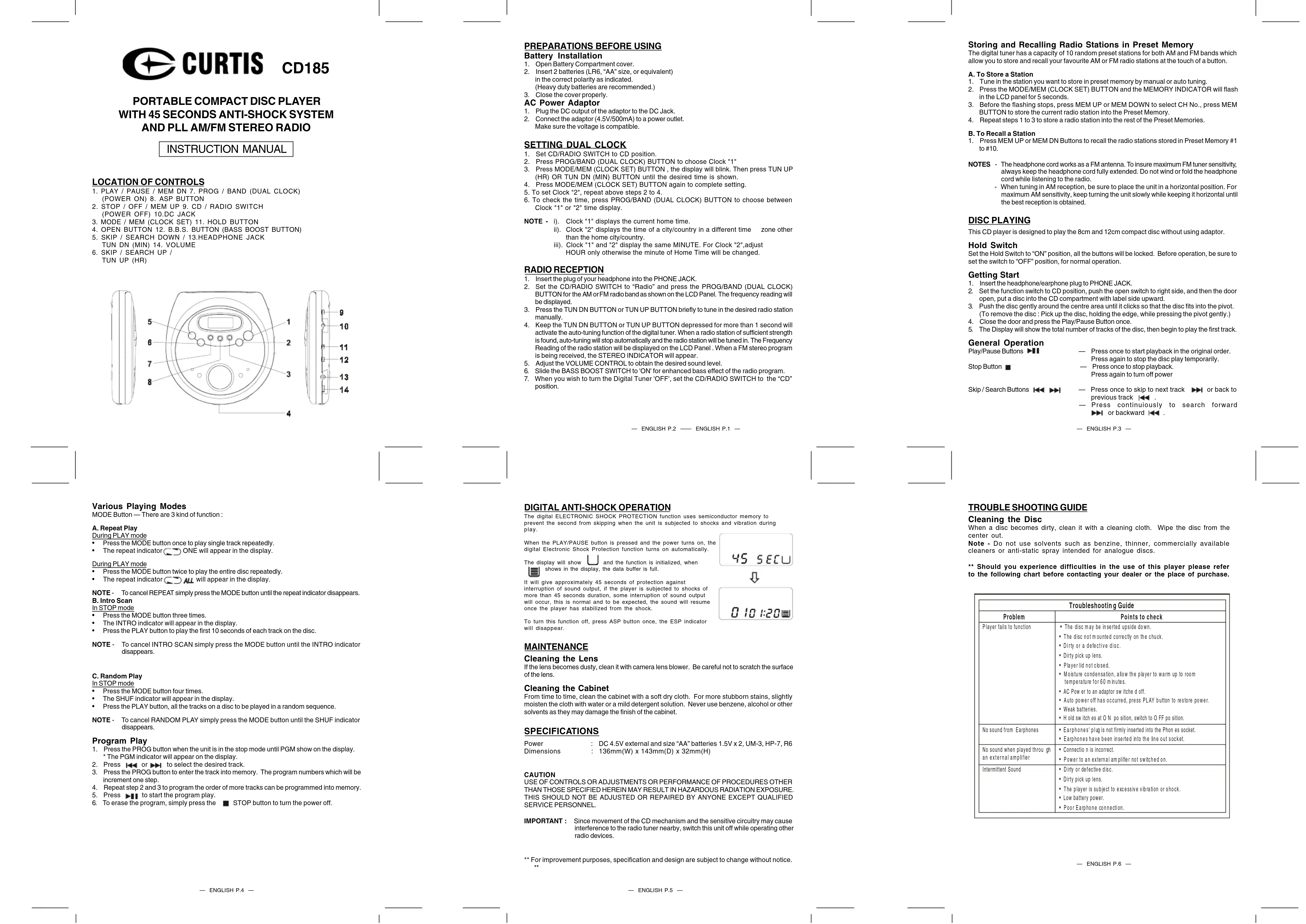 Retrouvez gratuitement la notice de l'appareil CD185 CURTIS au format PDF.
