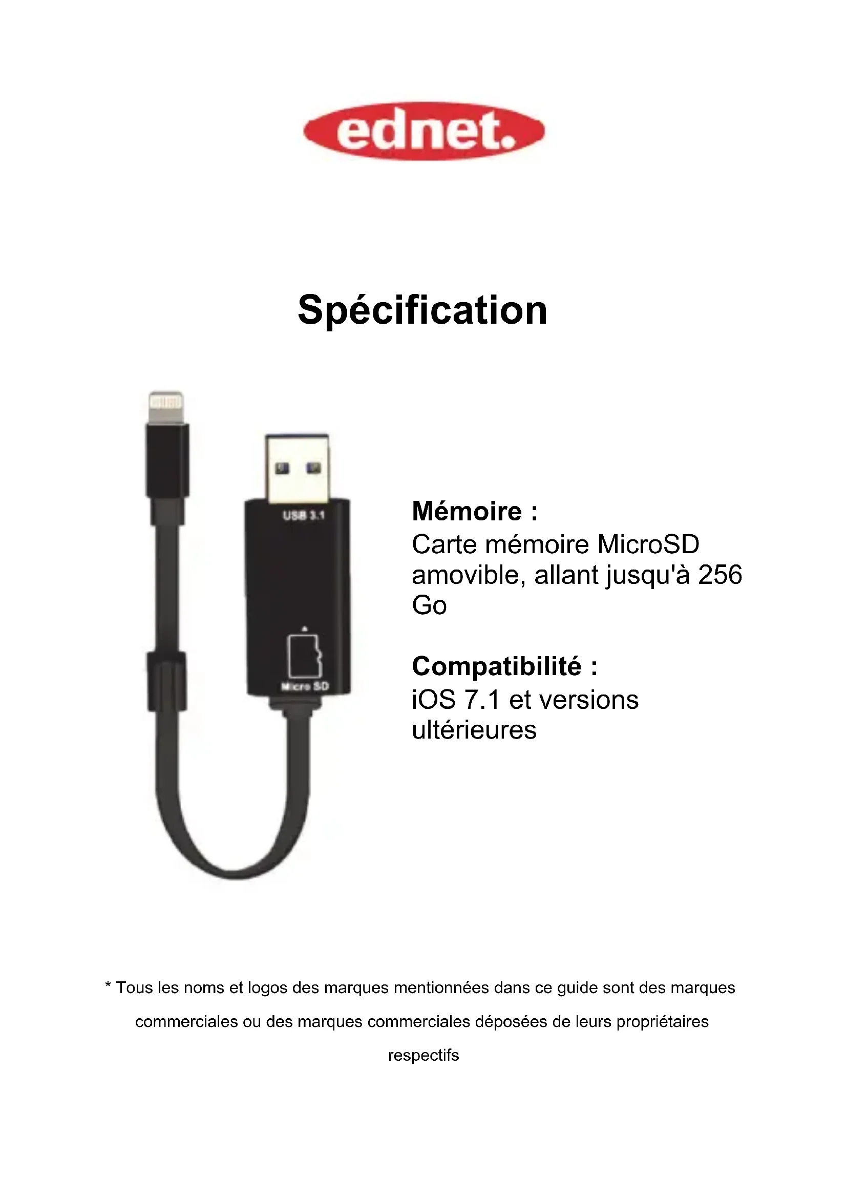 31519 - Lecteur de mémoire Ednet - Notice d'utilisation et mode d'emploi gratuit