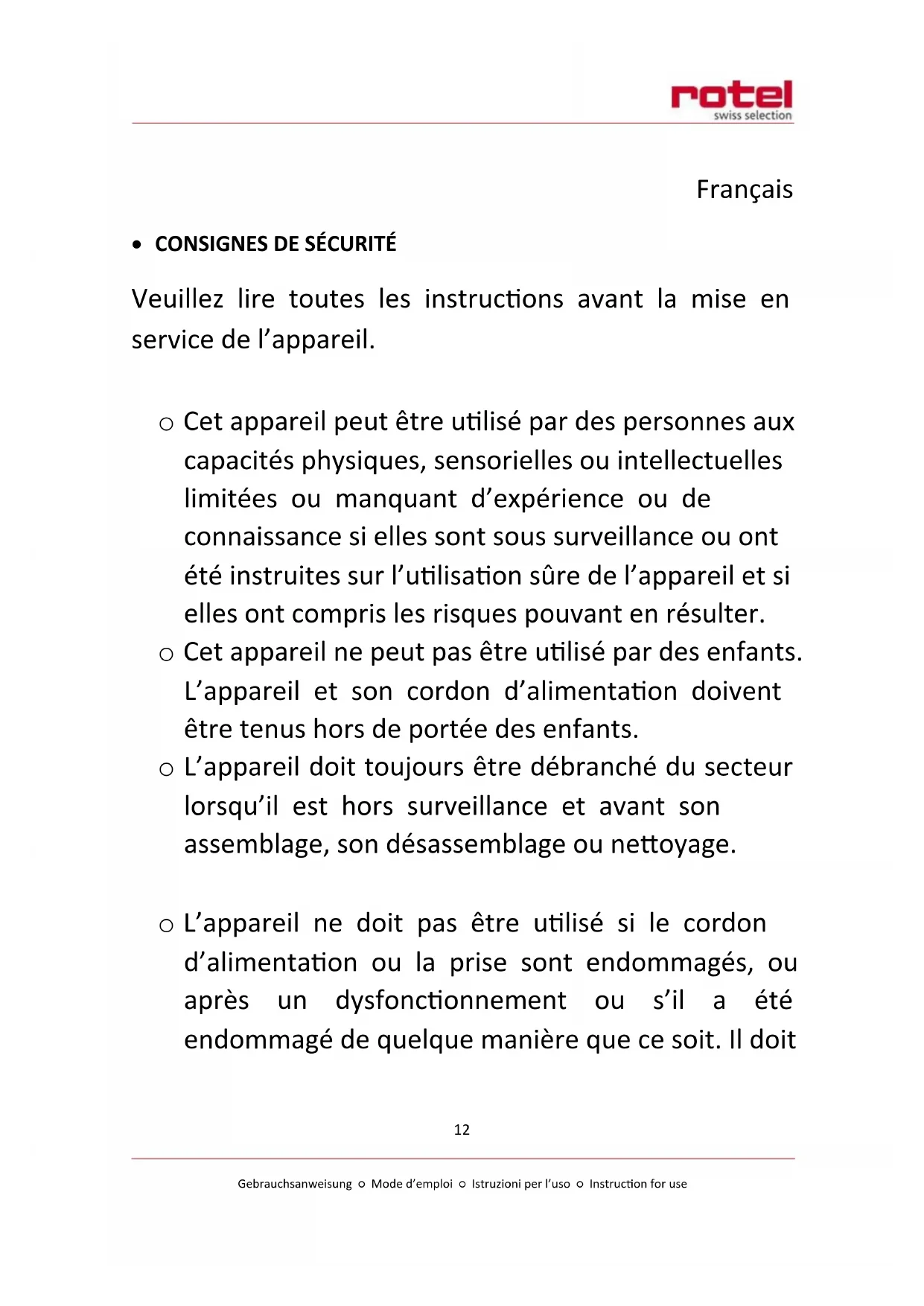 Pour une élimination dans les règles de l'art, veuillez remettre l'appareil à un revendeur, un responsable du service après-vente ou Rotel SA.