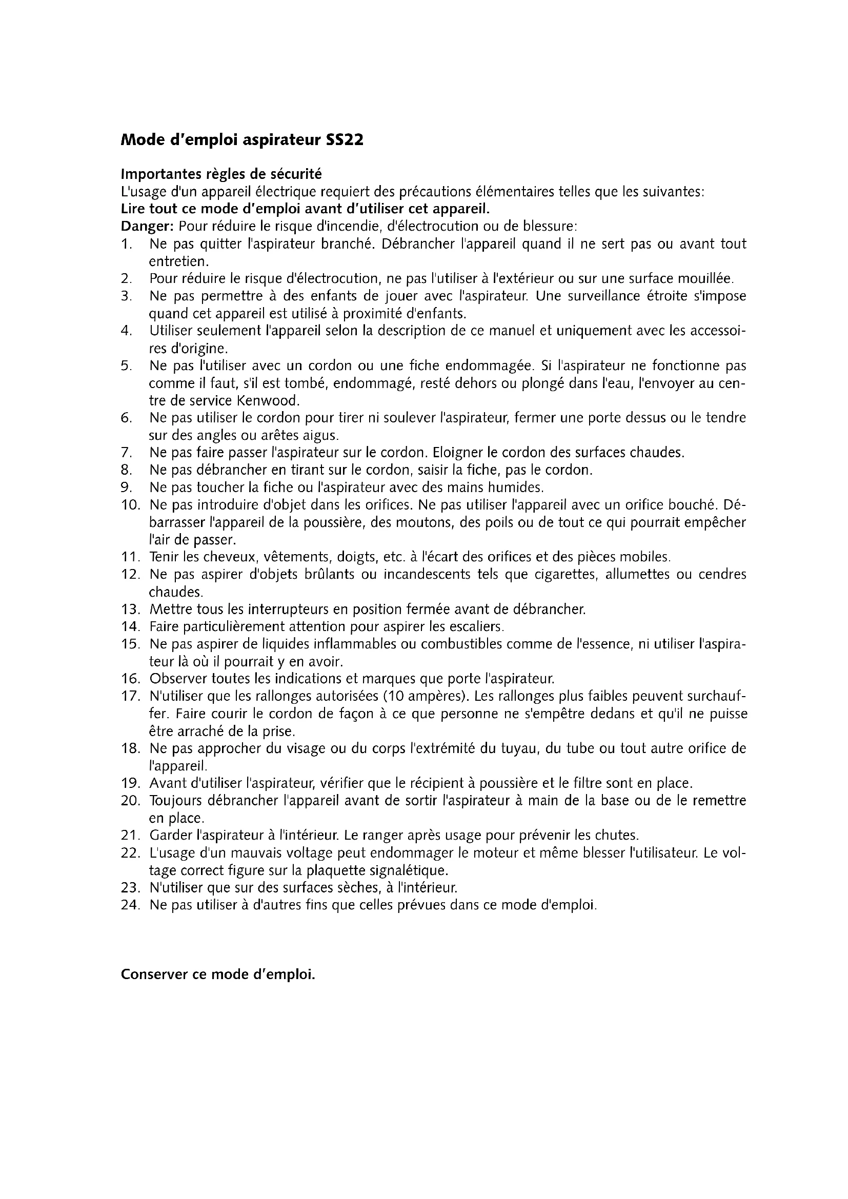 Conserver ce mode d’emploi.Aspirateur-traîneau