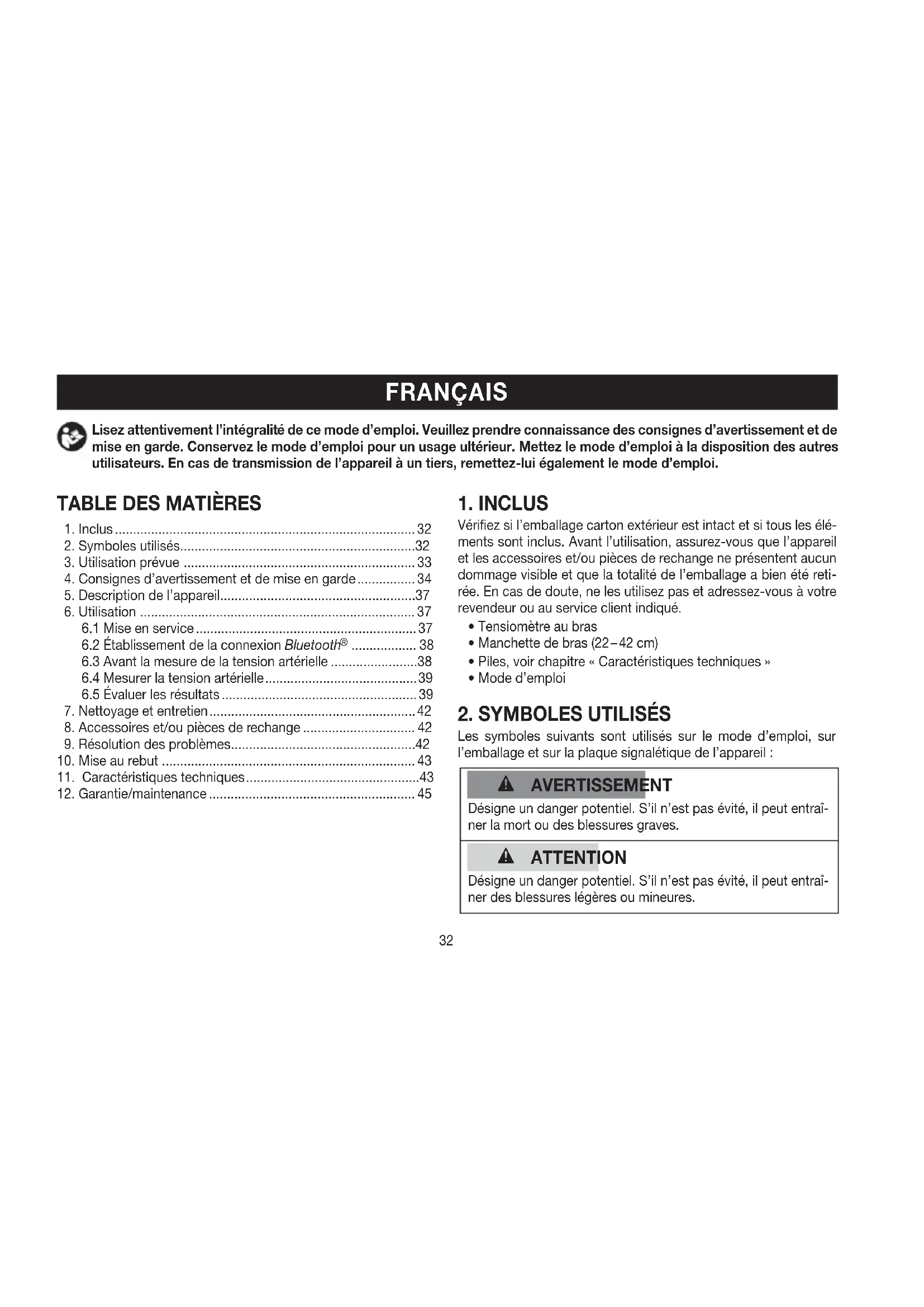 - Le tensiomètre est constitué de composants électroniques et de précision. La précision des valeurs mesurées et la durée de vie de l’appareil dépendent de sa manipulation.36