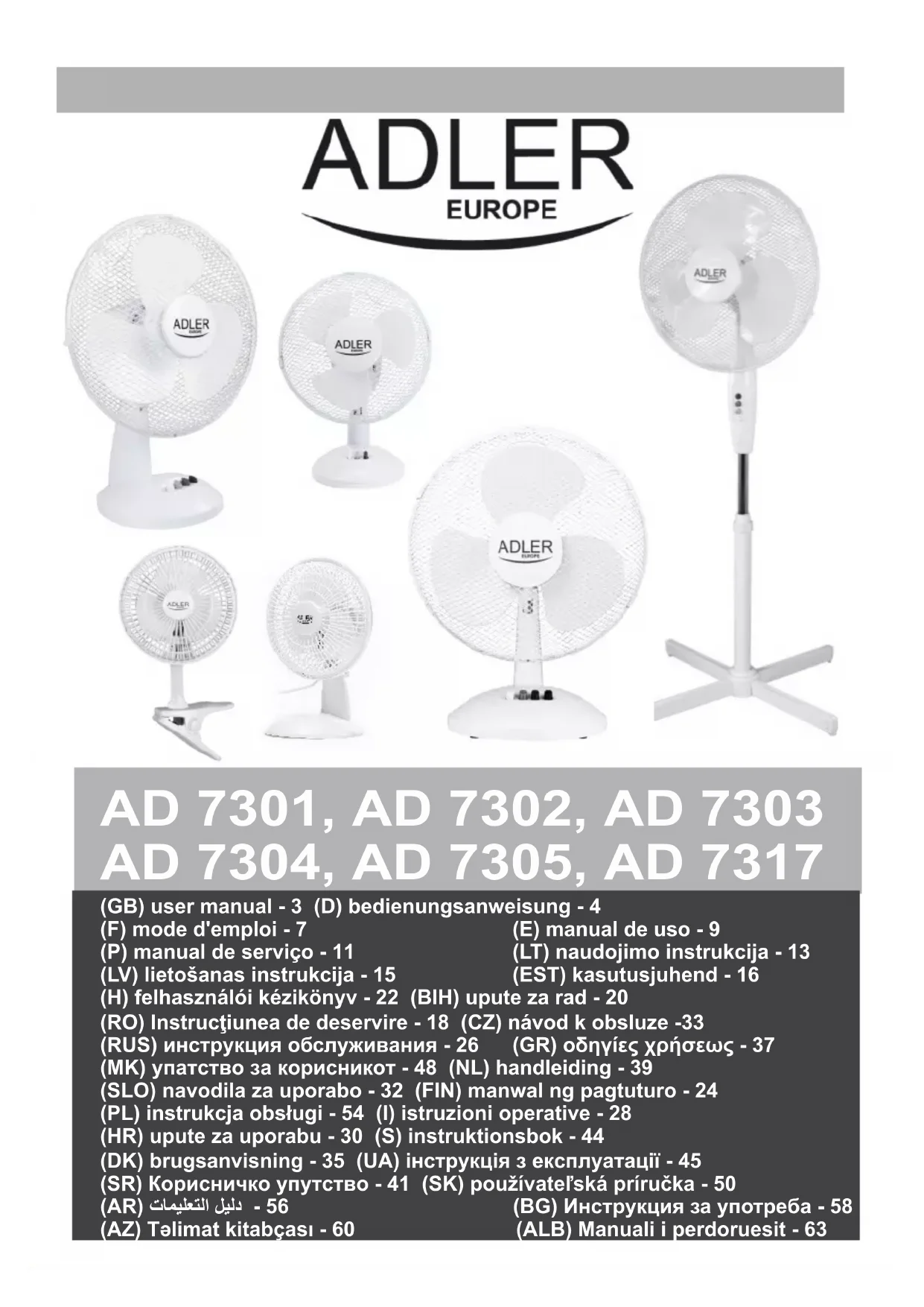 AD 7305 - Ventilateur ADLER - Notice d'utilisation et mode d'emploi gratuit
