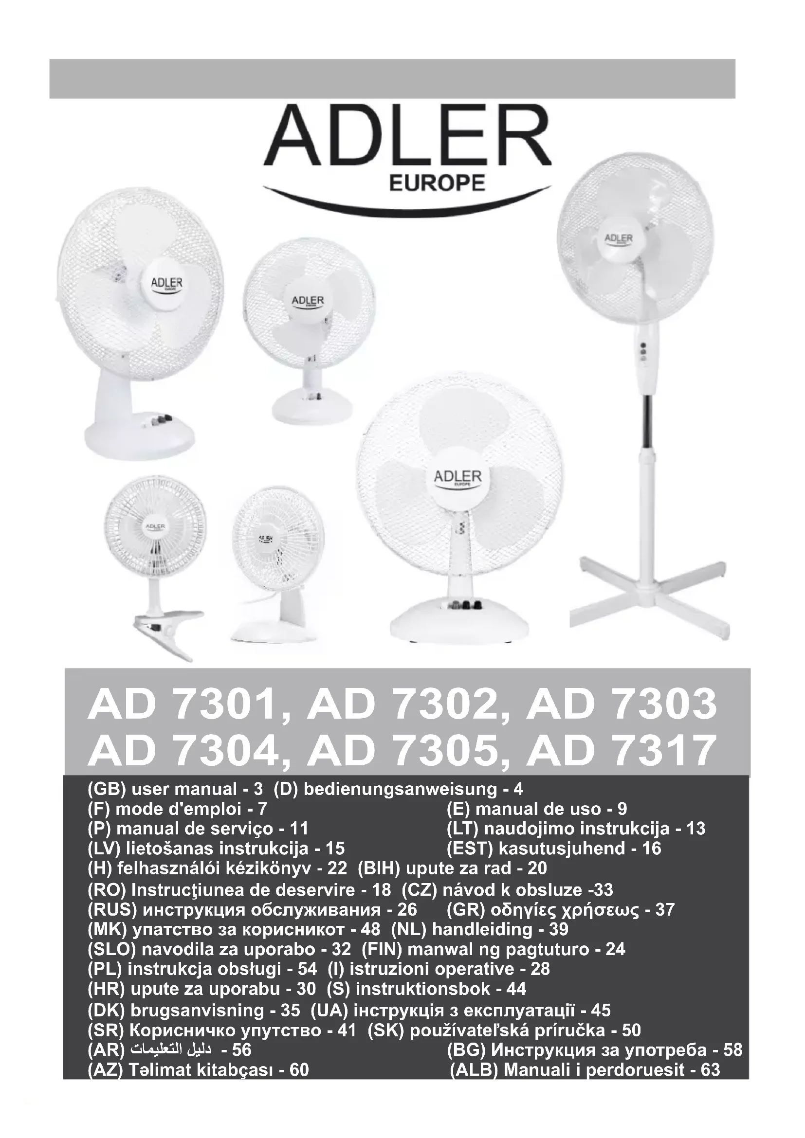AD 7303 - Ventilateur ADLER - Notice d'utilisation et mode d'emploi gratuit