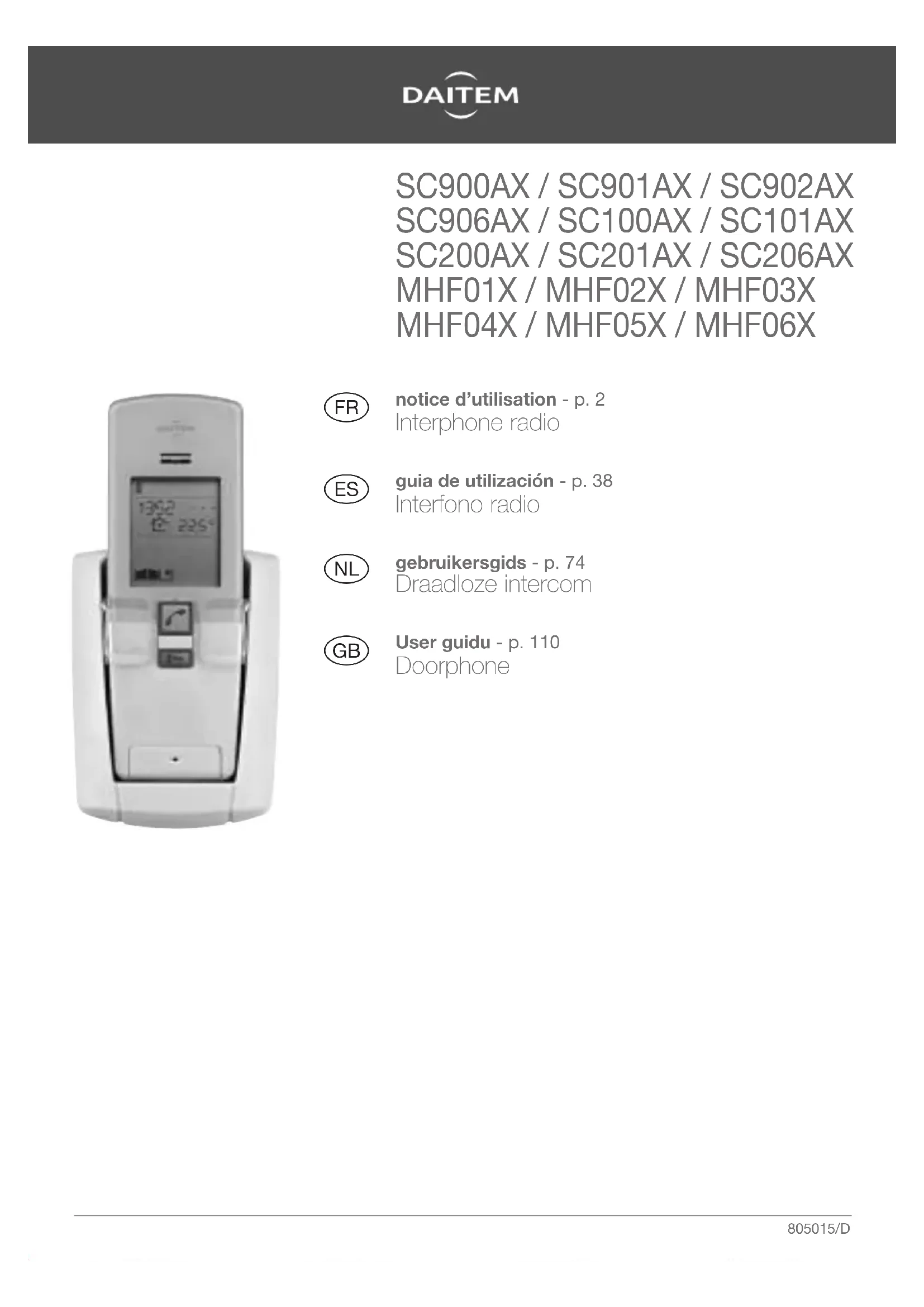 Par la présente, Hager Security SAS déclare que les équipements radioélectriques, références SC100AX et SC101AX sont conformes aux exigences de la directive RE-D 2014/53/EU. Le texte complet de la déclaration UE de conformité est disponible à l’adresse internet : www.daitem.fr. Document non contractuel, soumis à modifications sans préavis.38 El interfono le permite recibir y filtrar a las visitas, realizar una escucha en cada acceso y comunicarse con otro telefonillo. Además puede controlar a distancia: