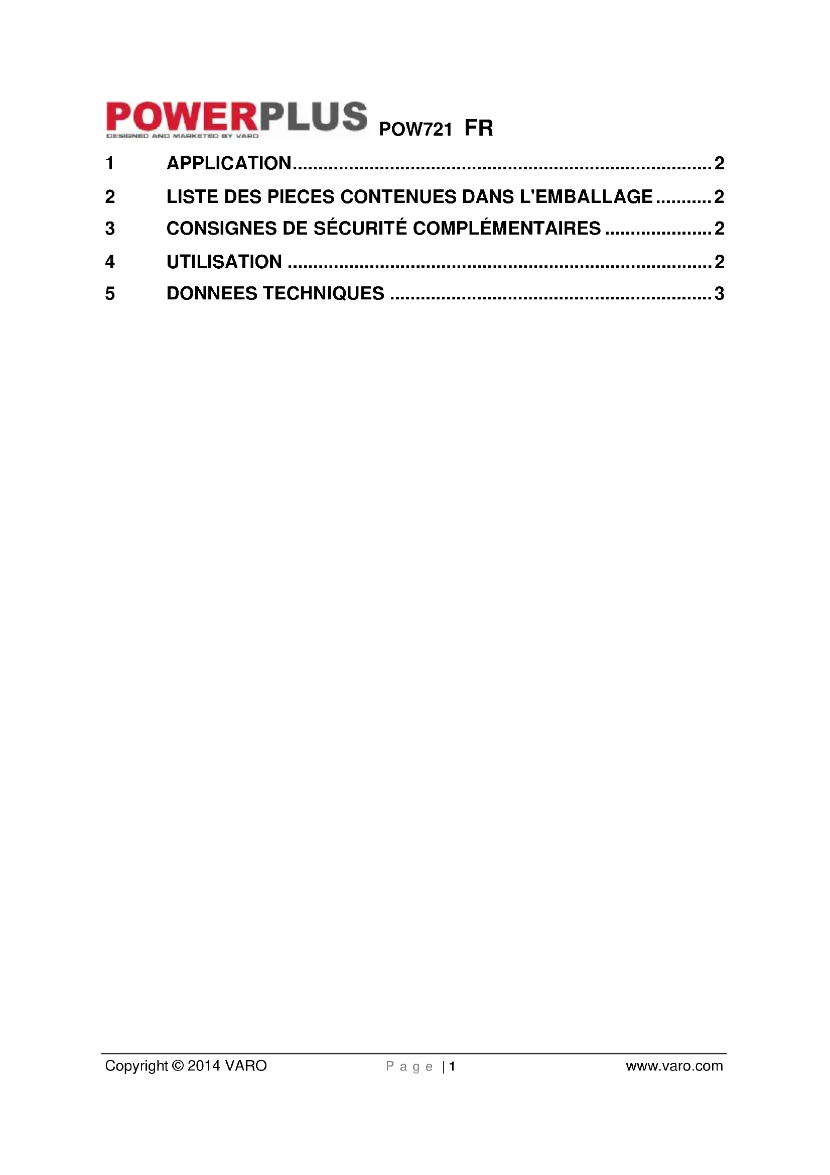 Retrouvez gratuitement la notice de l'appareil POW721 PowerPlus au format PDF.