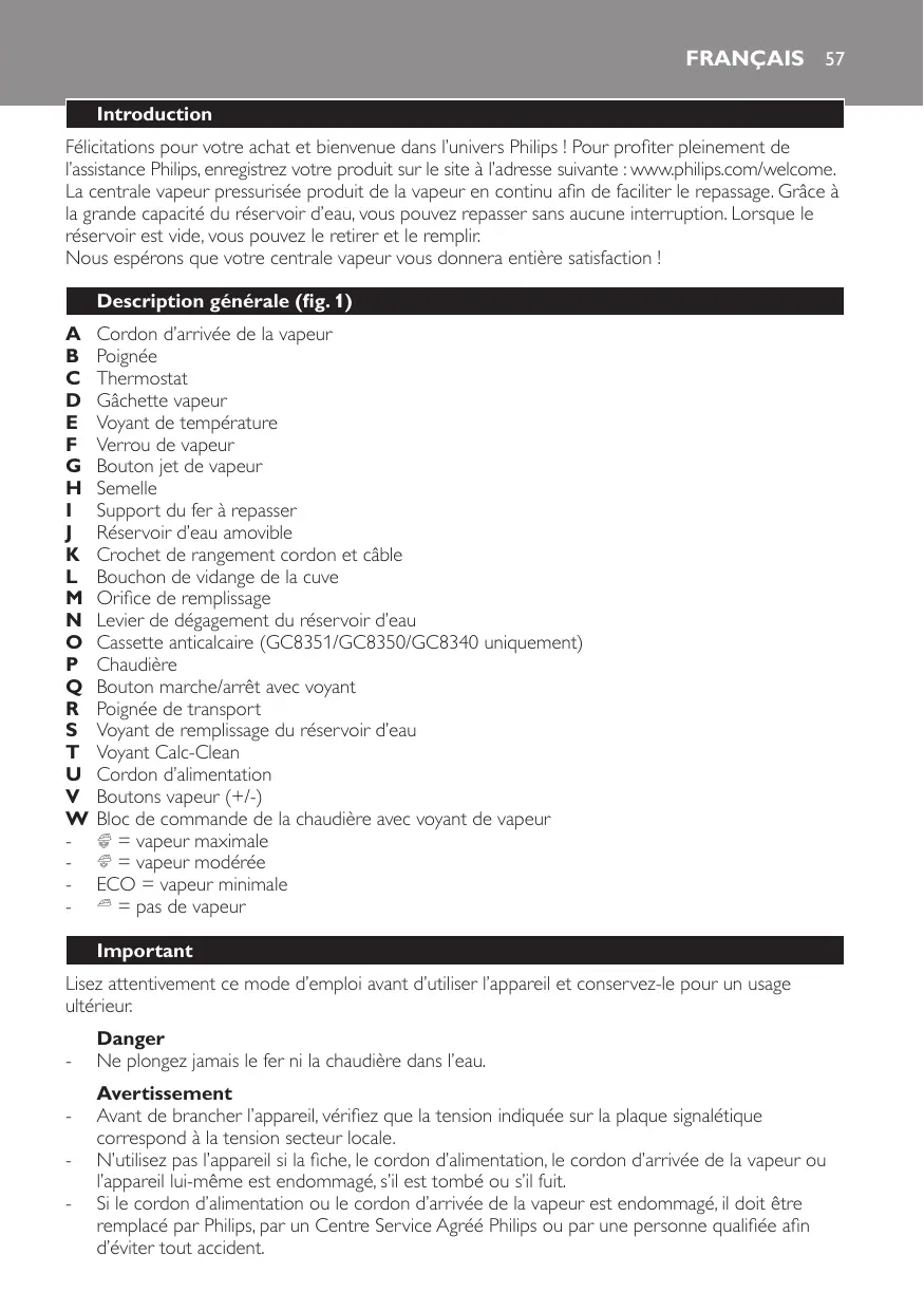 Retrouvez gratuitement la notice de l'appareil GC-8350 PHILIPS au format PDF.