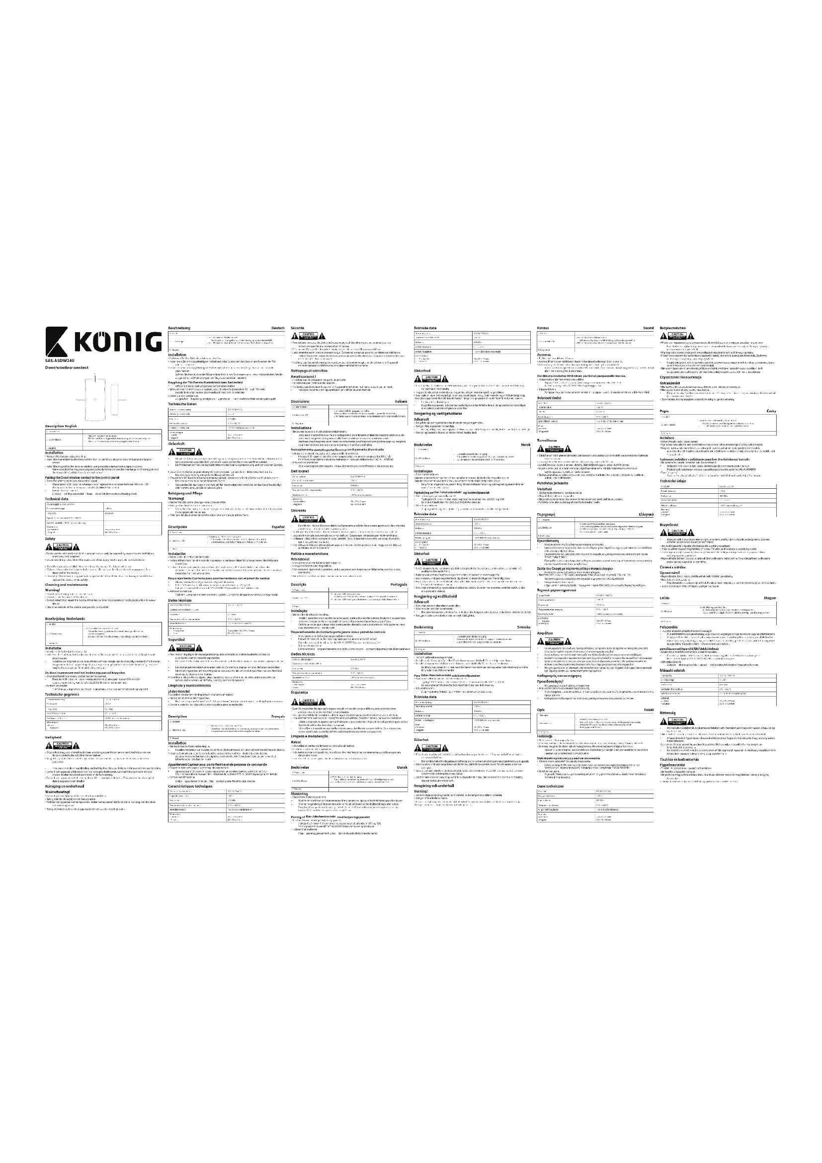 SASASDW240 - Capteur de porte / fenêtre KONIG - Notice d'utilisation et mode d'emploi gratuit