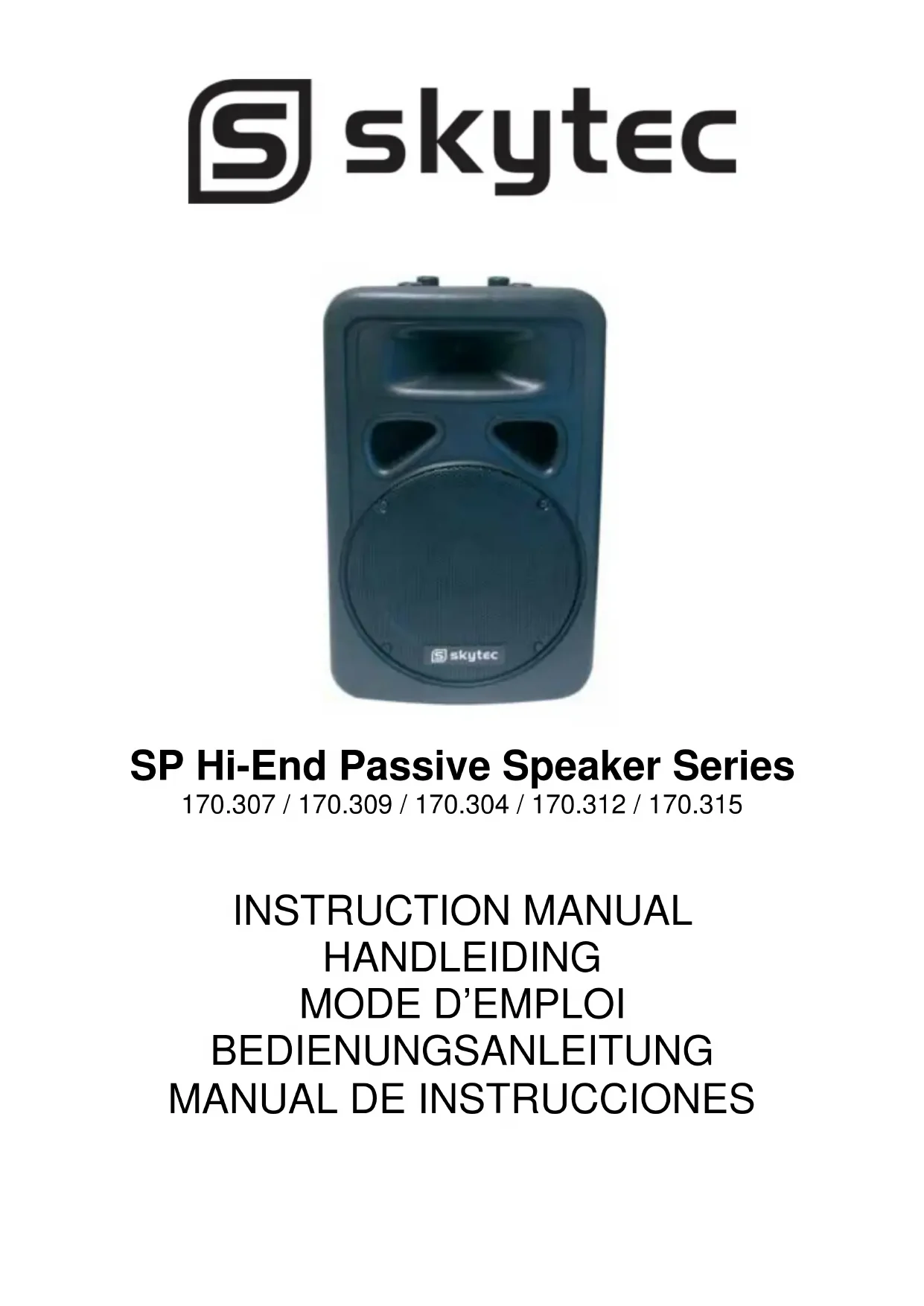 Nous vous remercions pour l’achat de cette enceinte passive SkyTec. Lire attentivement le mode d’emploi avant la première mise en service. Recommandations d’utilisation: