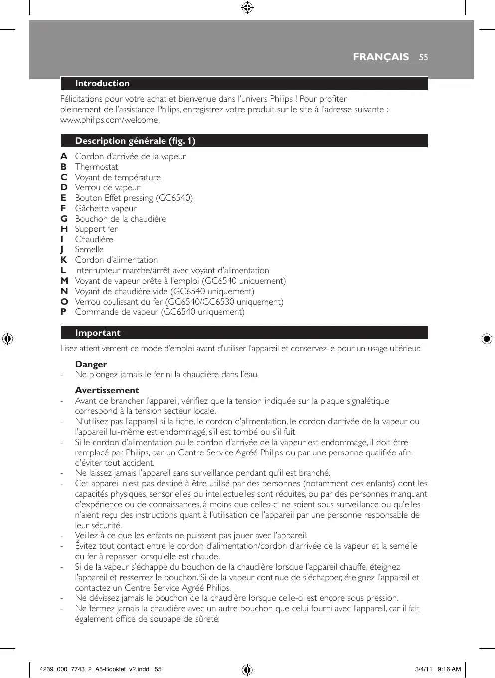 Retrouvez gratuitement la notice de l'appareil GC 6511 PHILIPS au format PDF.
