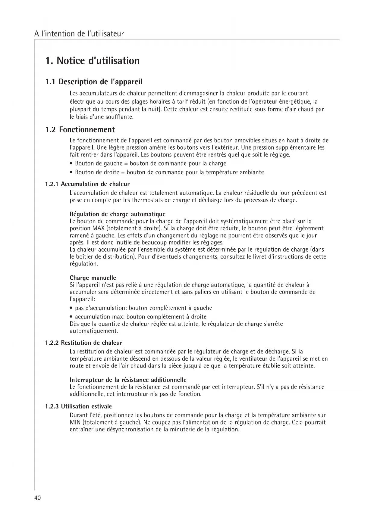 Pour qu'un appareil non chargé puisse diffuser immédiatement de la chaleur, il est conseillé d'installer une résistance additionnelle. Elle fonctionne en tarif de jour. Le fonctionnement de la résistance additionnelle est commandé par un bouton lumineux. Le bouton de commande est allumé quand la résistance fonctionne. L'installation d'une résistance additionnelle doit impérativement être réalisée par un spécialiste. Montage