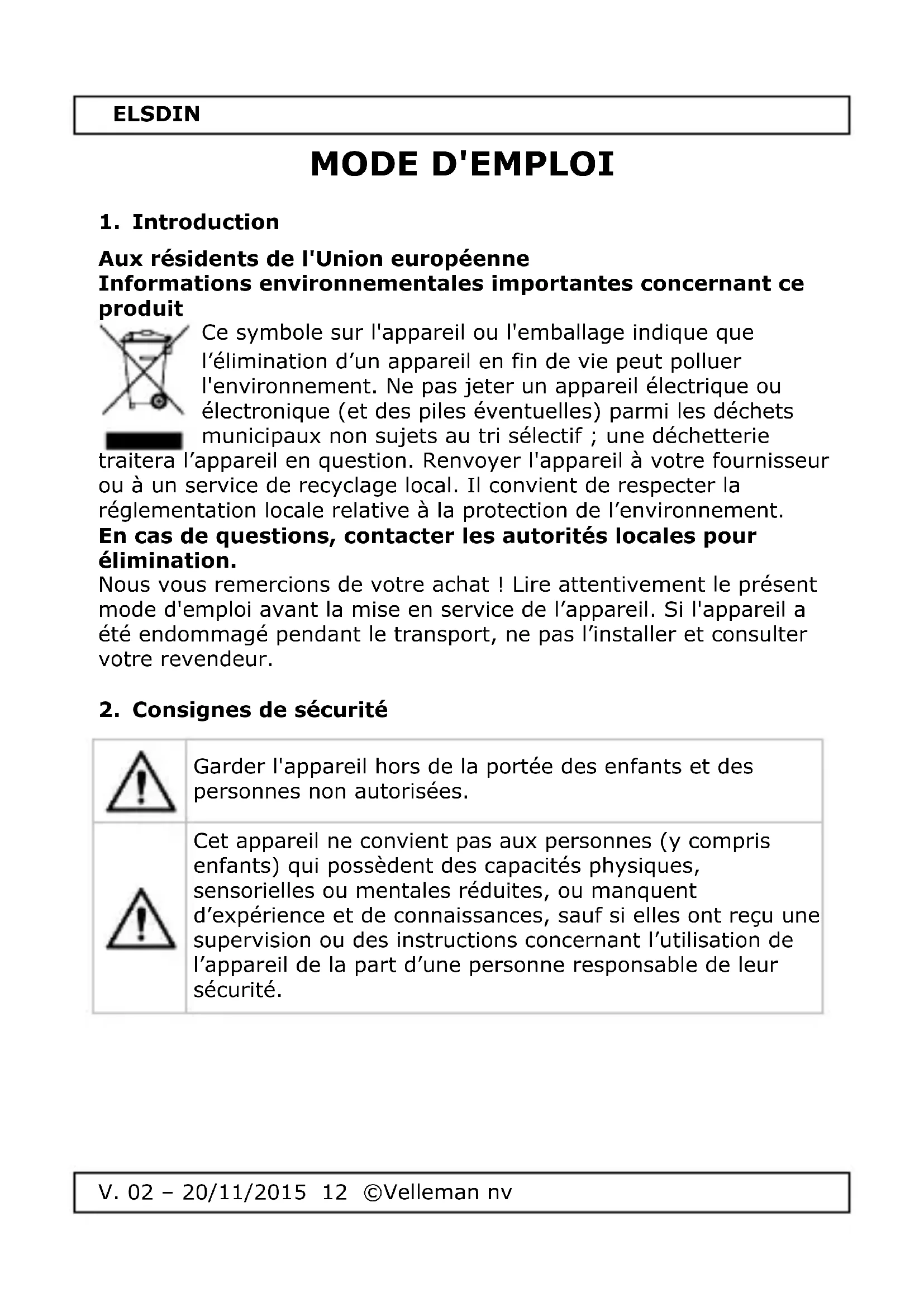MODE D'EMPLOI ELSDIN Perel