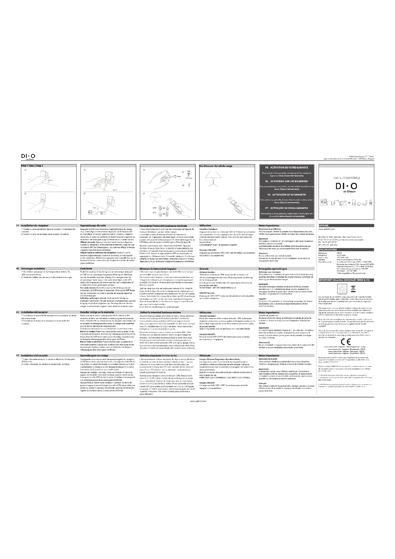 Pour activer votre garantie, remplissez le formulaire en ligne sur www.chacon.be/warranty