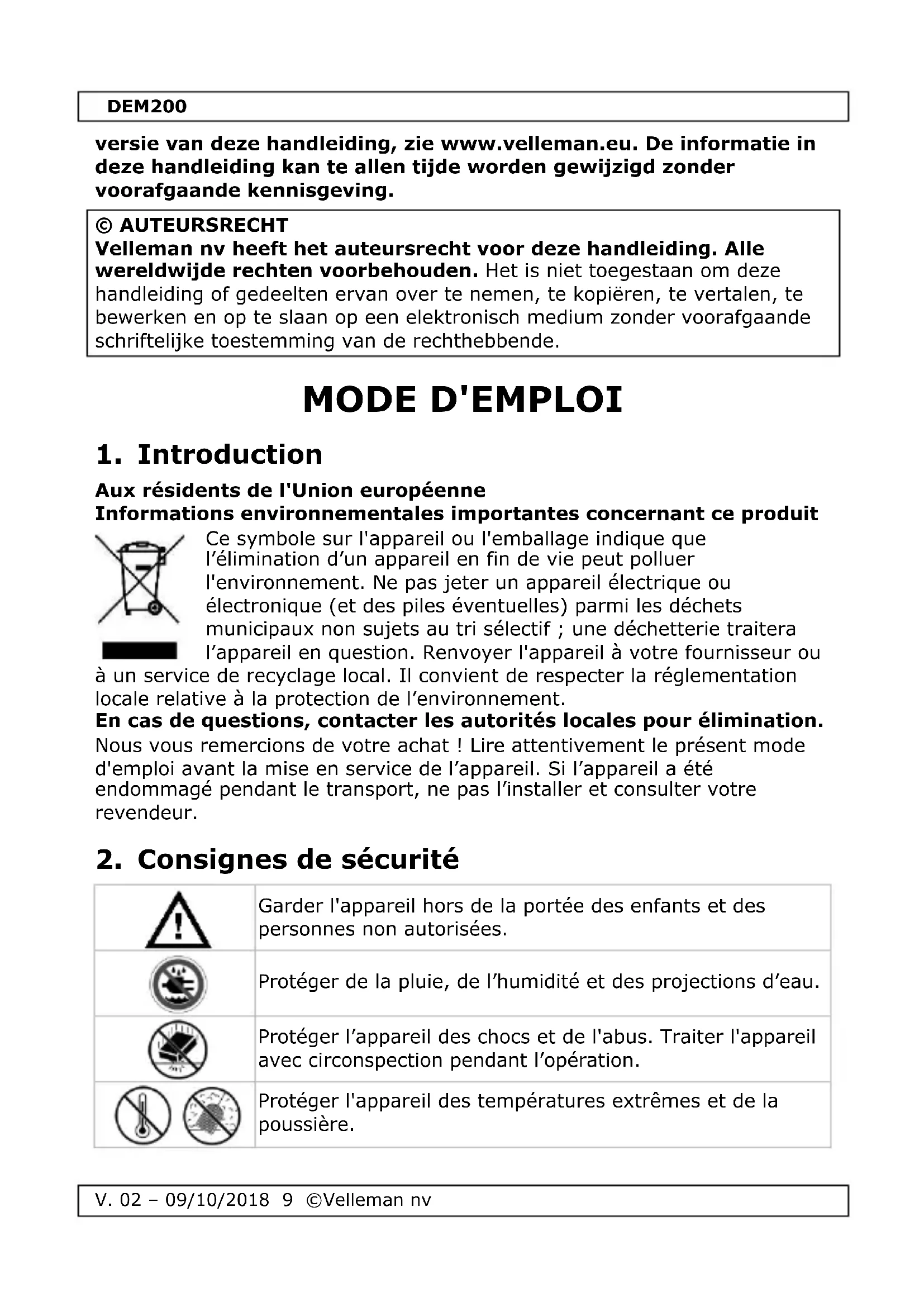V. 02 - 09/10/2018 © Velleman nv