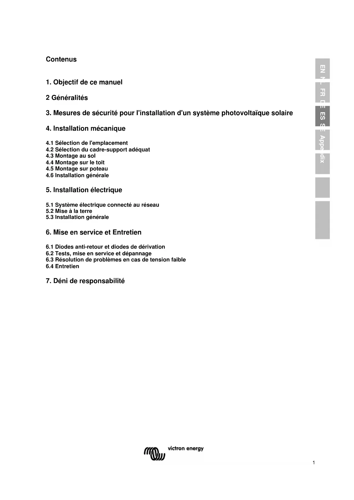 Avant d'installer un système photovoltaique (PV) solaire, les installateurs doivent se familiariser avec les exigences mécaniques et électriques de ce genre de système. Conserver ce manuel dans un endroit sur pour une éventuelle utilisation à partir (entretien et maintenance), et en cas de vente ou délimination des modules.