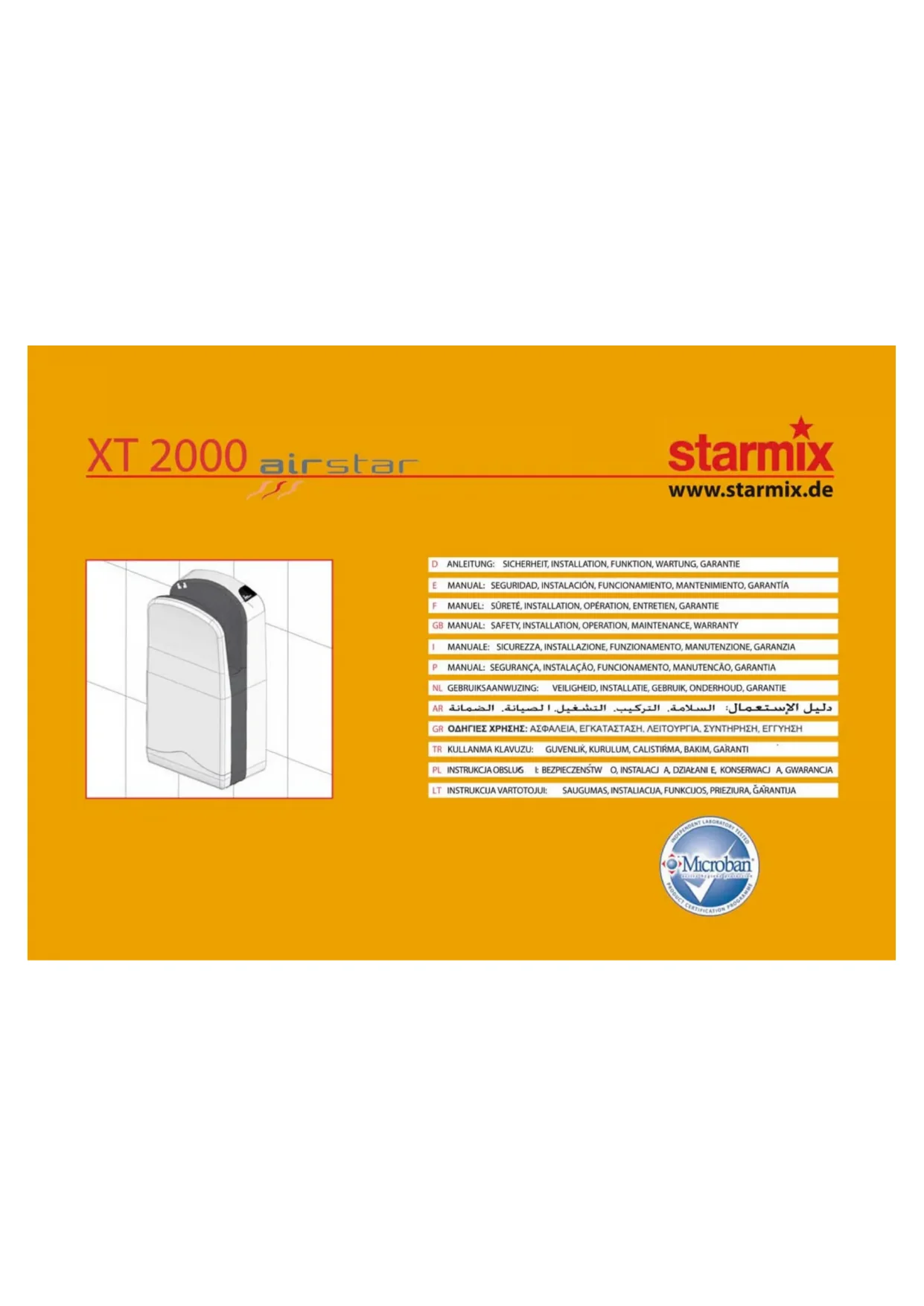 XT2000 - Sèche-main Starmix - Notice d'utilisation et mode d'emploi gratuit