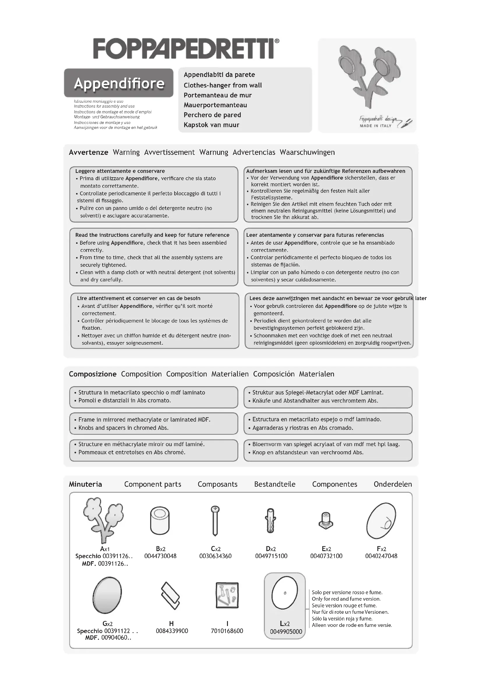 Appendifiore - Porte-manteaux Foppapedretti - Notice d'utilisation et mode d'emploi gratuit