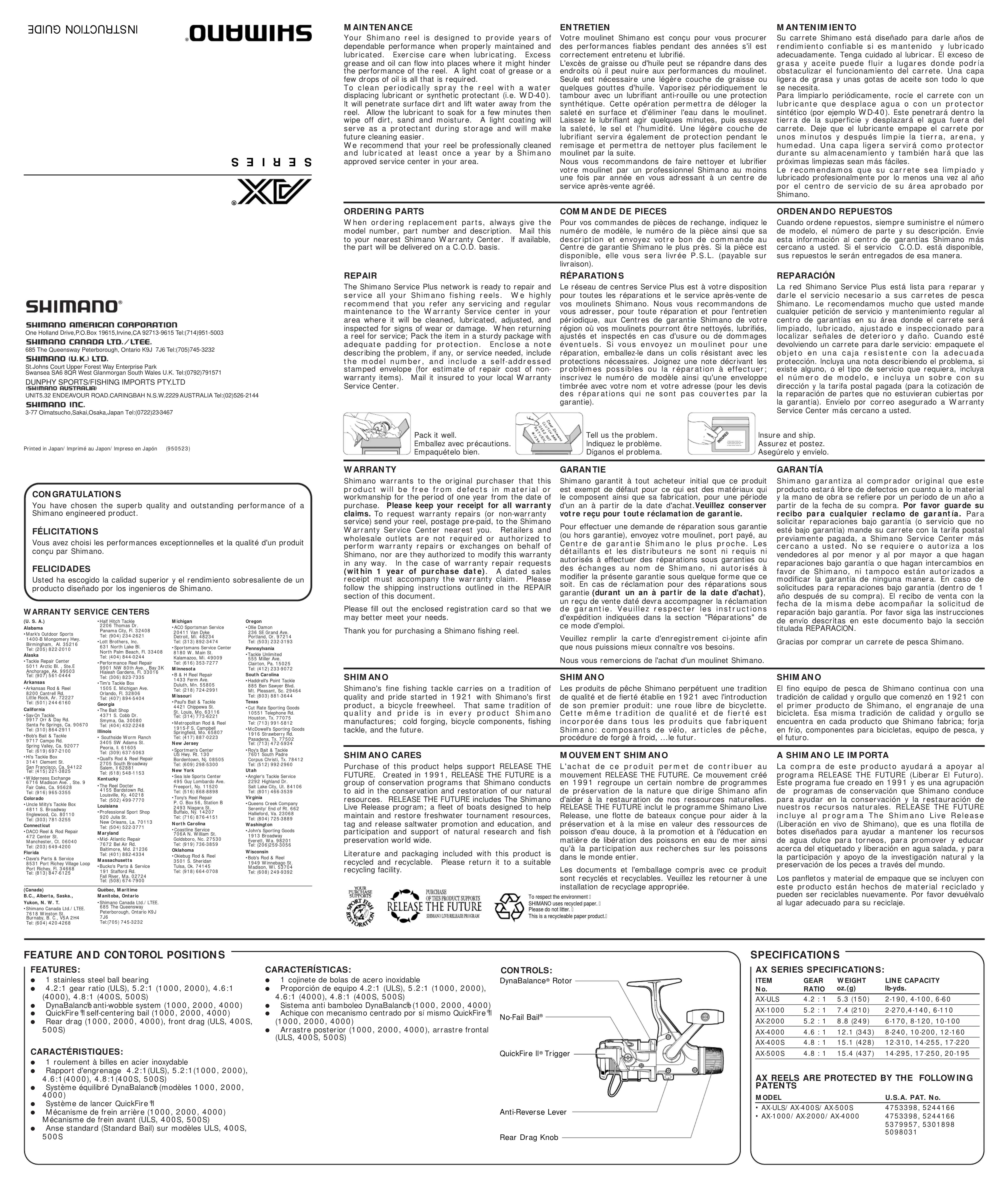 AX 4000 - Moulinet de pêche SHIMANO - Notice d'utilisation et mode d'emploi gratuit