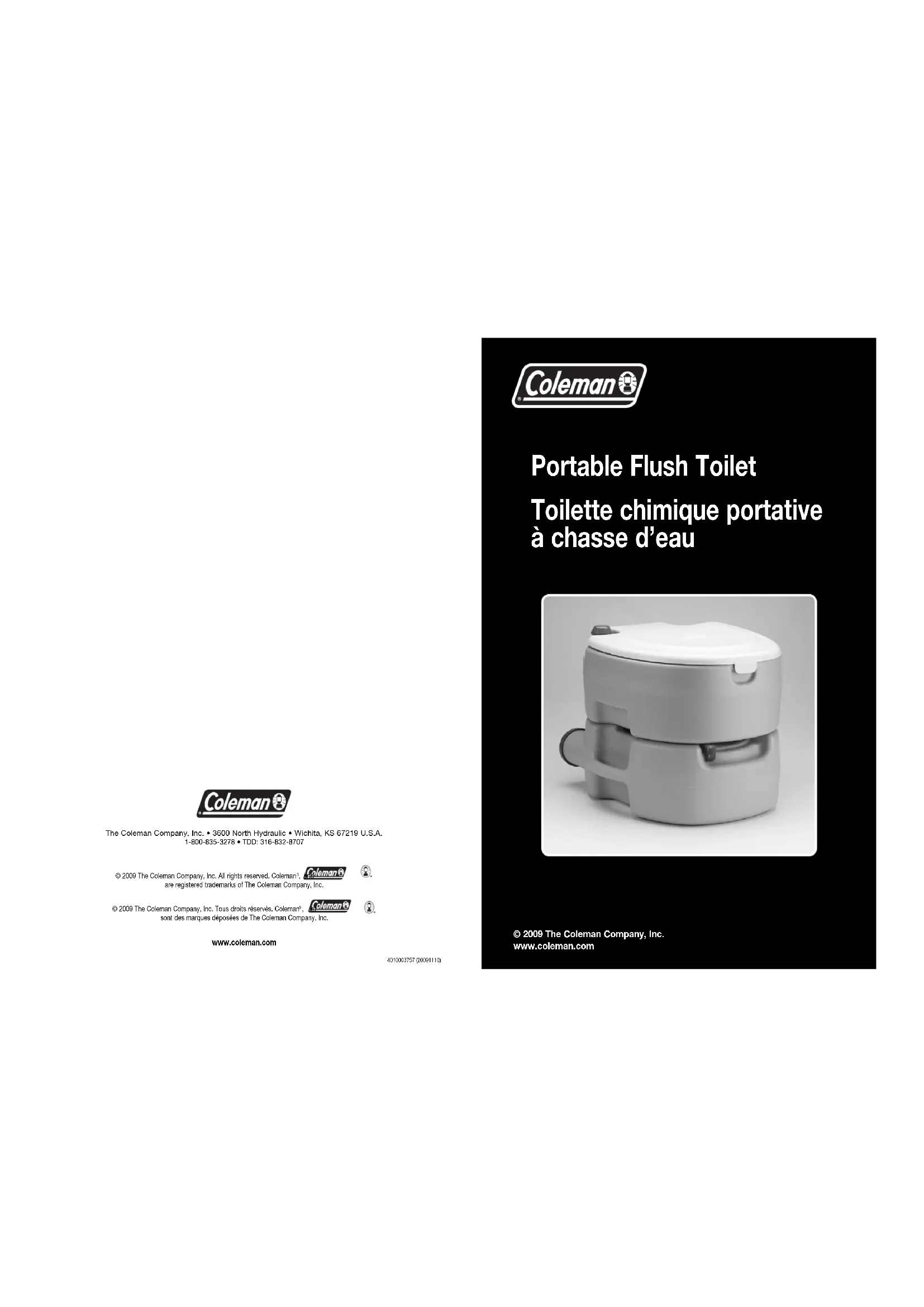 , et sont des marques déposées de The Coleman Company, Inc. www.coleman.com 4010003757 (20091110) Portable Flush Toilet Toilette chimique portative à chasse d’eau © 2009 The Coleman Company, Inc. www.coleman.comEnglish-1 INTRODUCTION Your Coleman