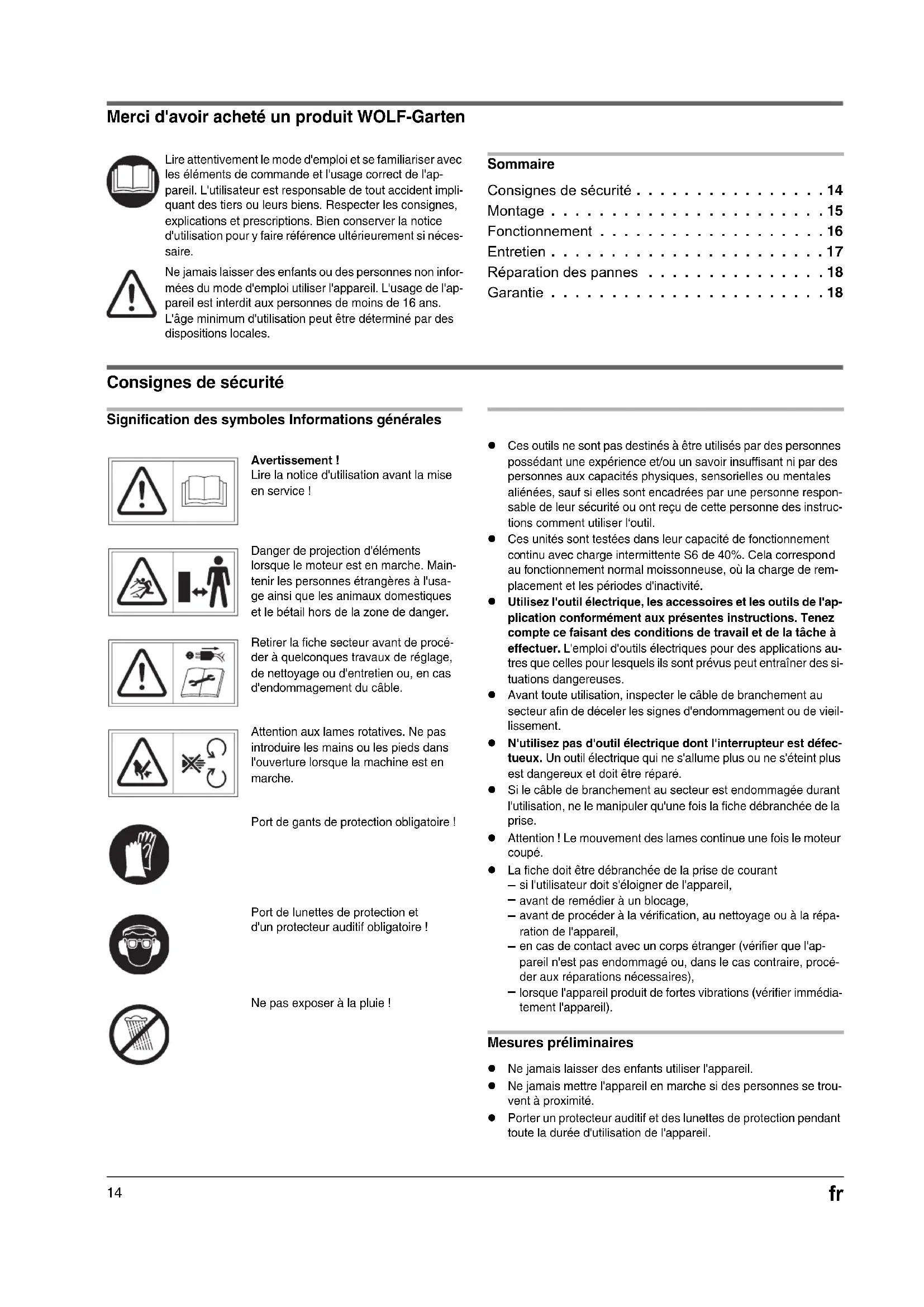 Au moindre doute, consulter un atelier de service WOLF-Garten.