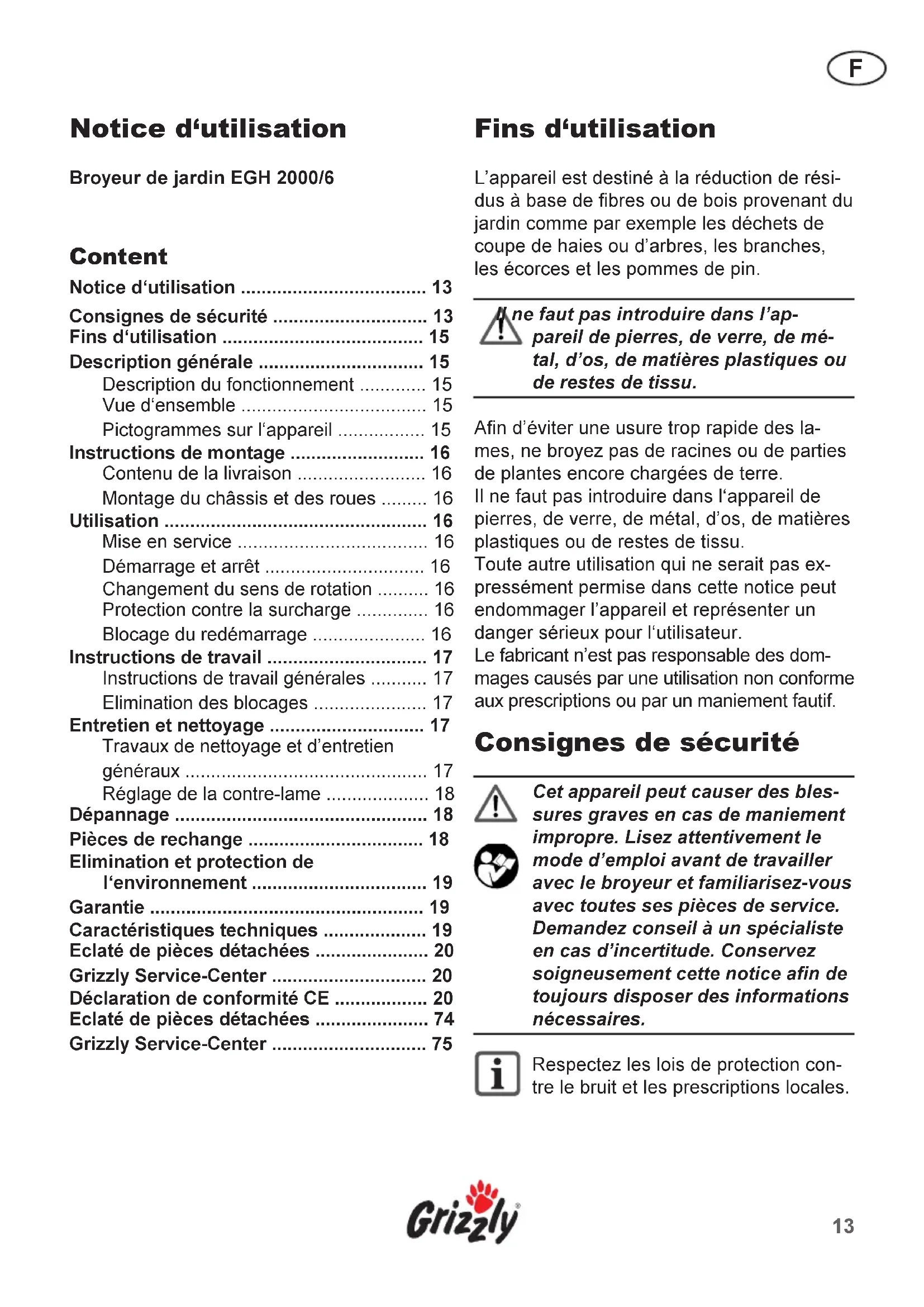 EGH 20006 - Hacheuse mécanique Grizzly - Notice d'utilisation et mode d'emploi gratuit