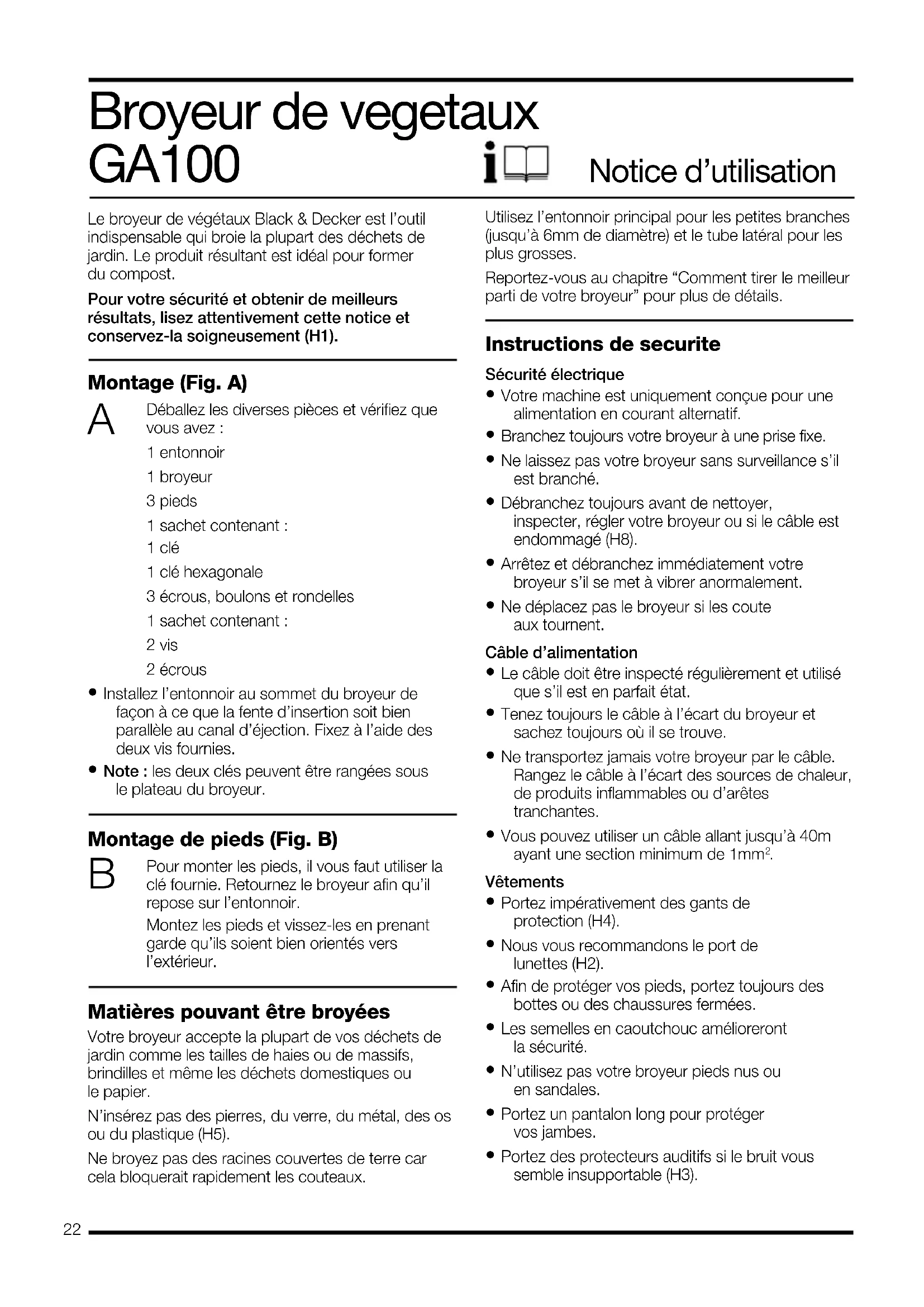 GA100 - Hacheuse mécanique BLACK & DECKER - Notice d'utilisation et mode d'emploi gratuit