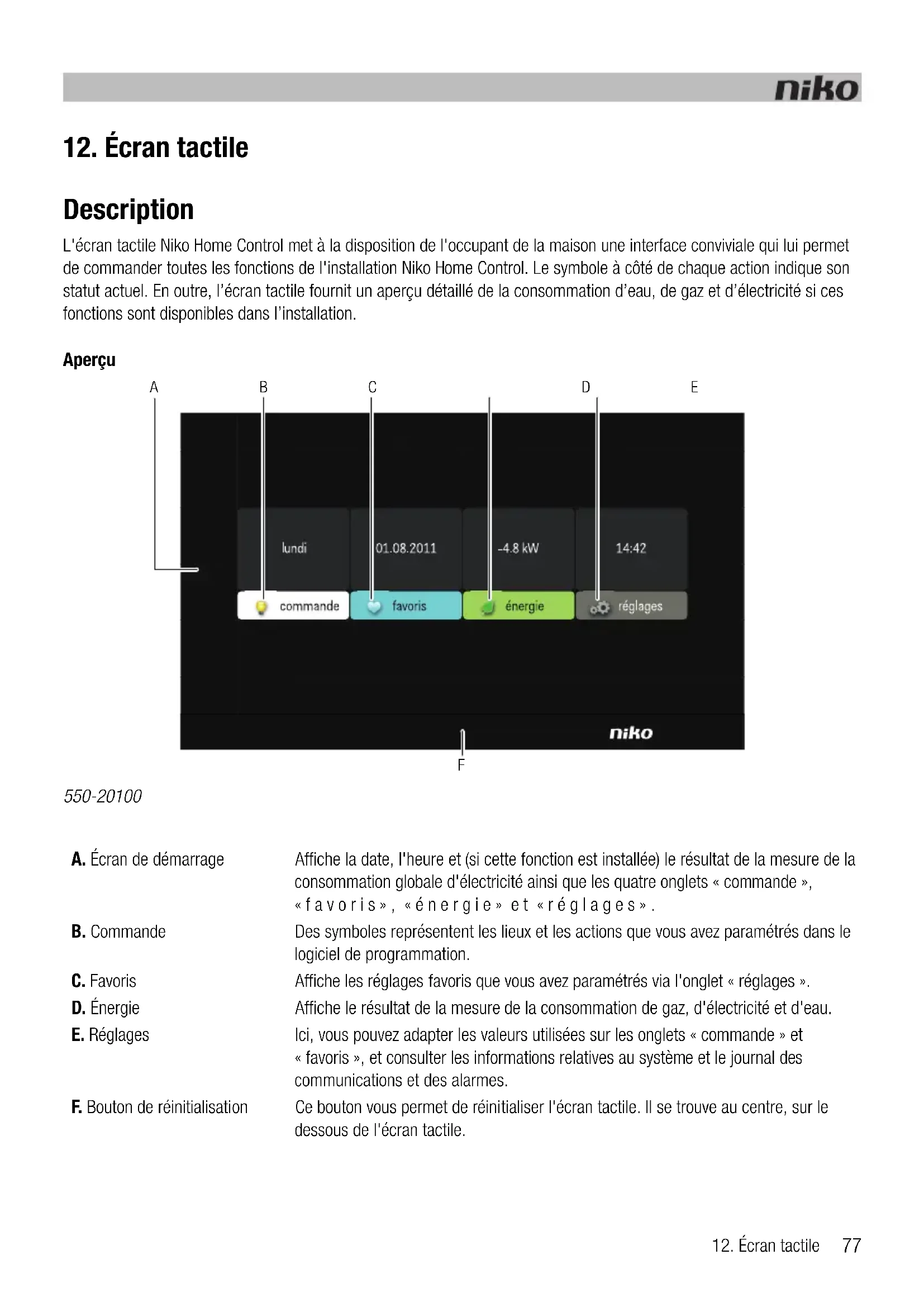 A B C D E lundi 01.08.2011 -4.8 kW 14:42 commande favoris énergie réglages niko F550-20100