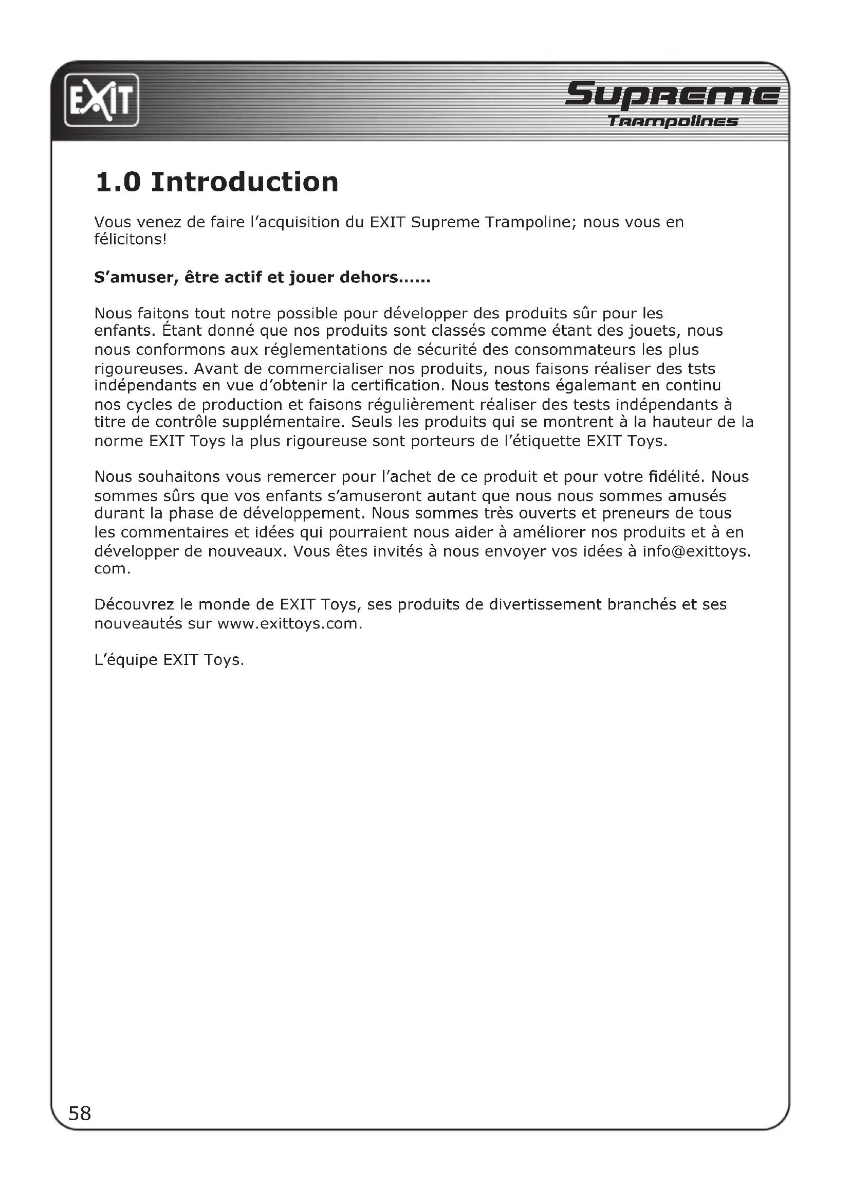 Voues venez de faire I'acquisition du EXIT Supreme Trampoline; nous vous en felicitons!