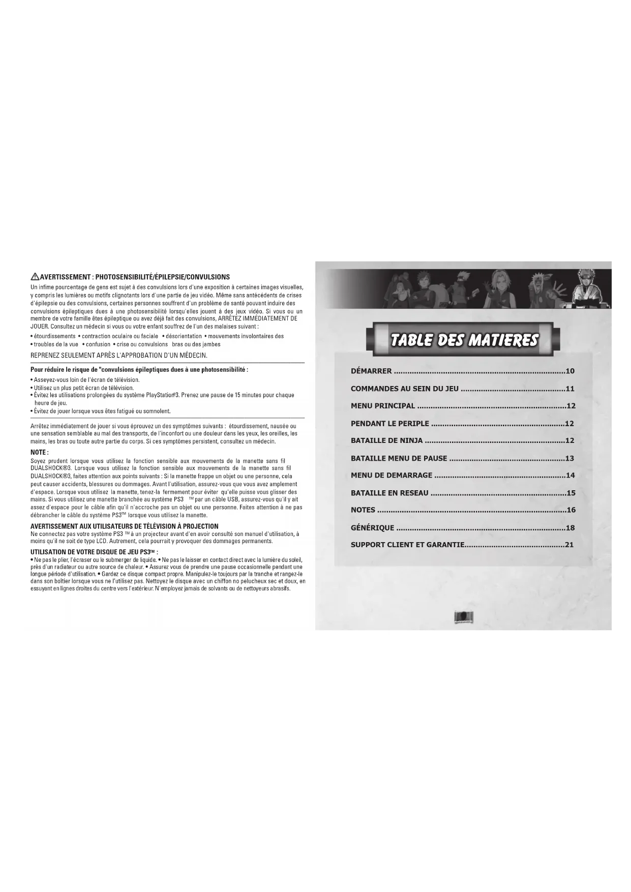 Entamer une partie: Avant d'utiliser, lisez attentivement les instructions fournies avec la console PS3TM. La documentation contient des renseignements concernant l'installation et l'utilisation du système, ainsi que des informations de sécurité importantes.