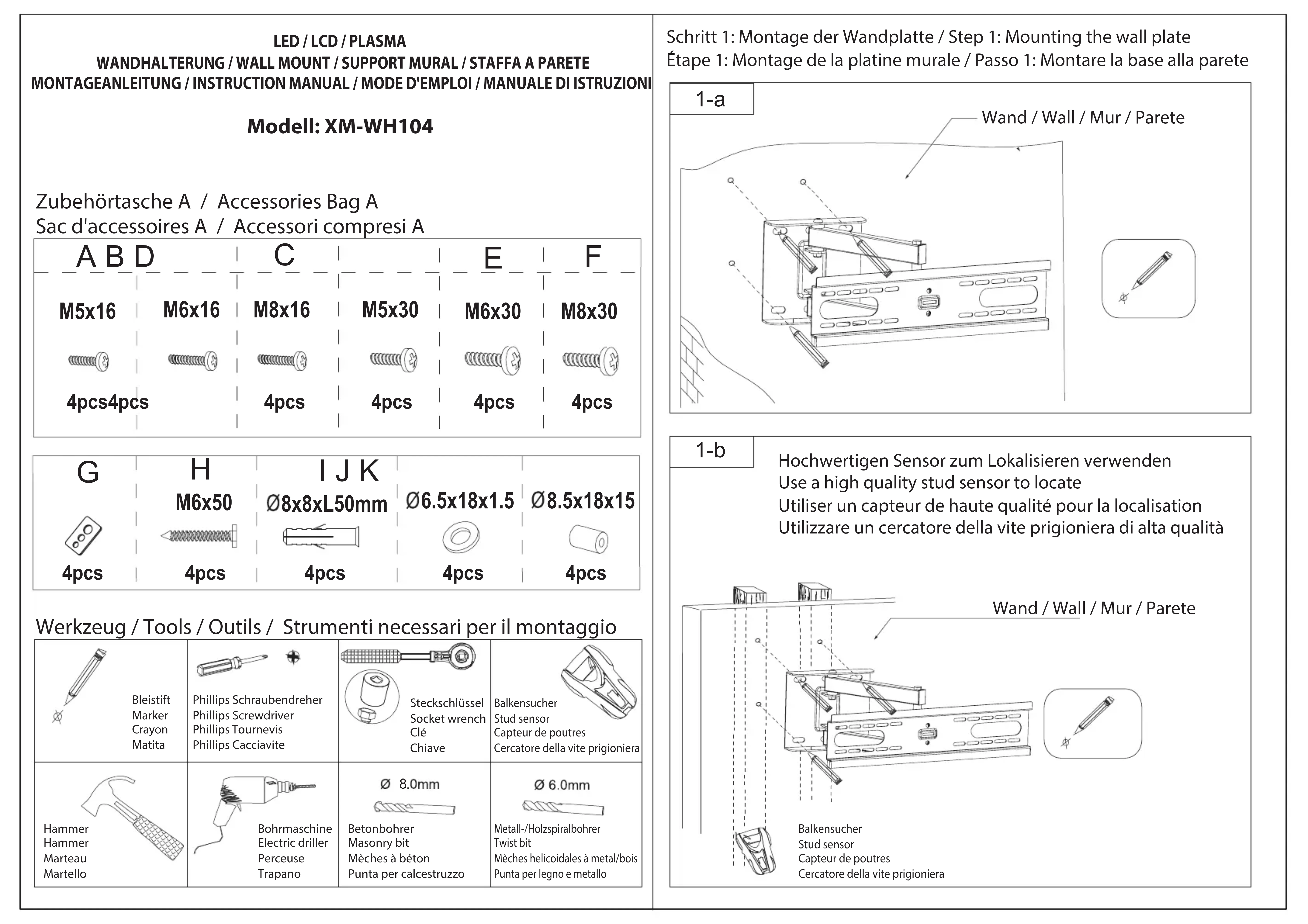 XMWH104 - Support mural Xomax - Notice d'utilisation et mode d'emploi gratuit