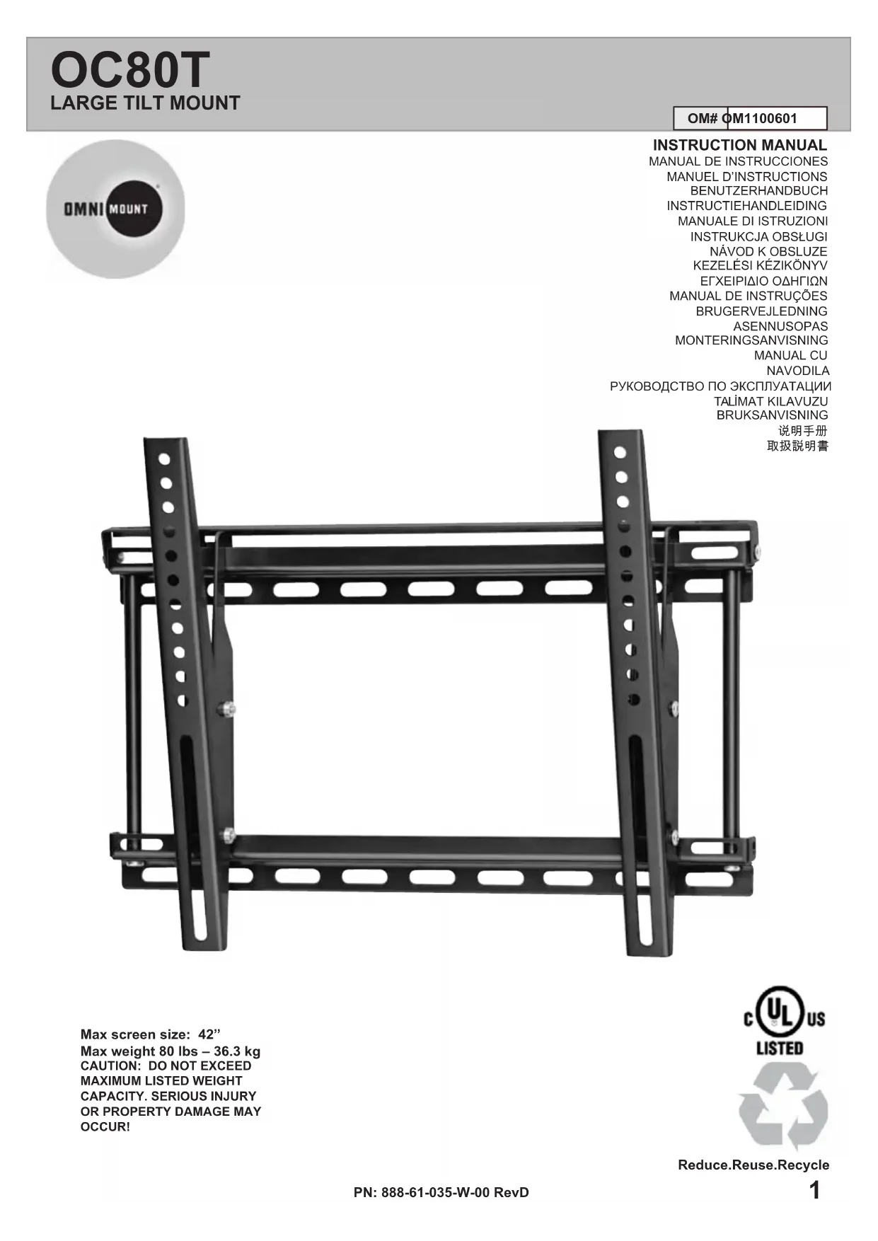 Téléchargez la notice de votre Support mural au format PDF gratuitement ! Retrouvez votre notice OC80T - OmniMount et reprennez votre appareil électronique en main. Sur cette page sont publiés tous les documents nécessaires à l'utilisation de votre appareil OC80T de la marque OmniMount.