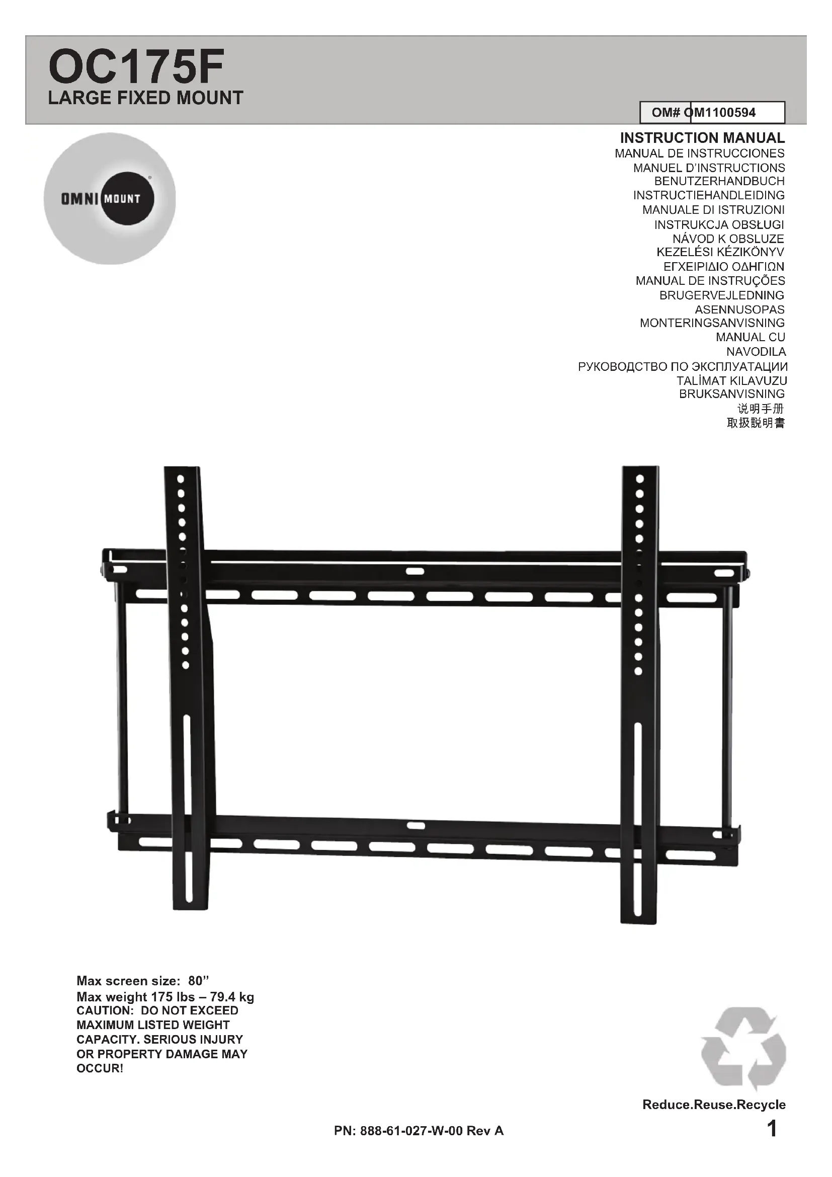 Téléchargez la notice de votre Support mural au format PDF gratuitement ! Retrouvez votre notice OC175F - OmniMount et reprennez votre appareil électronique en main. Sur cette page sont publiés tous les documents nécessaires à l'utilisation de votre appareil OC175F de la marque OmniMount.