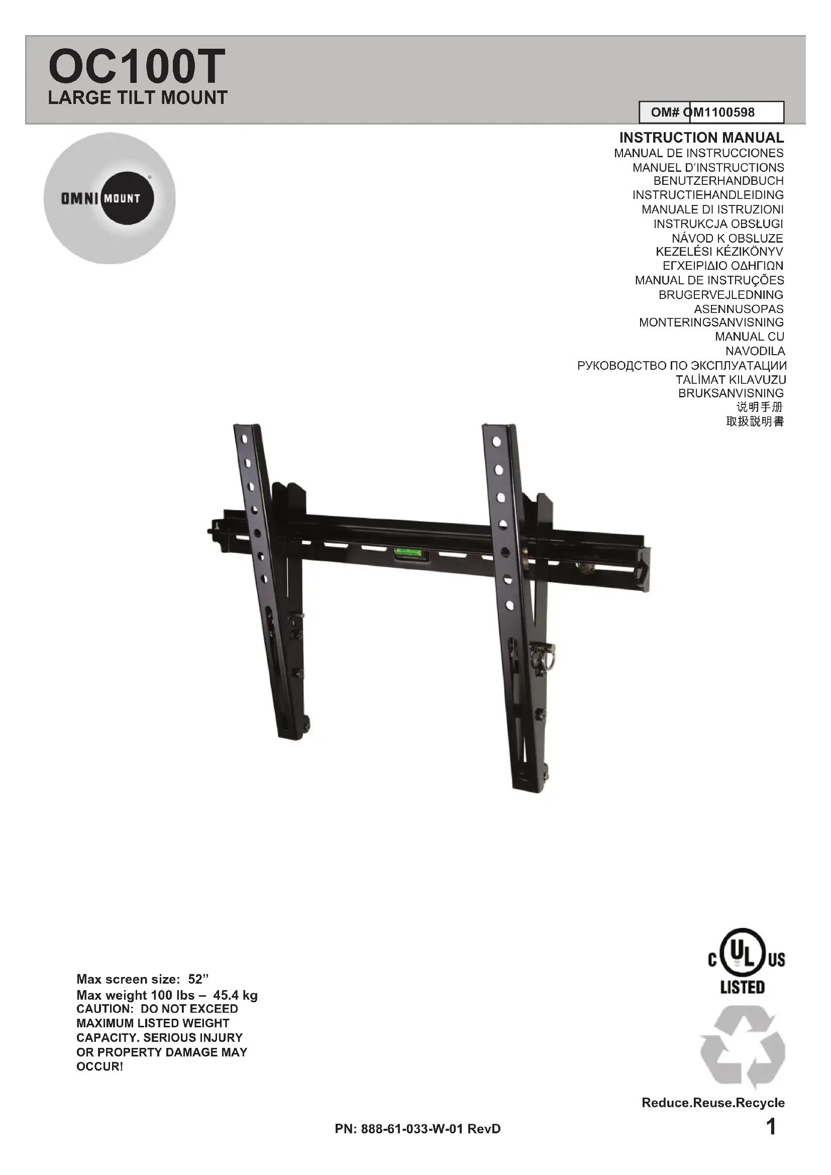 Retrouvez gratuitement la notice de l'appareil OC100T OmniMount au format PDF.