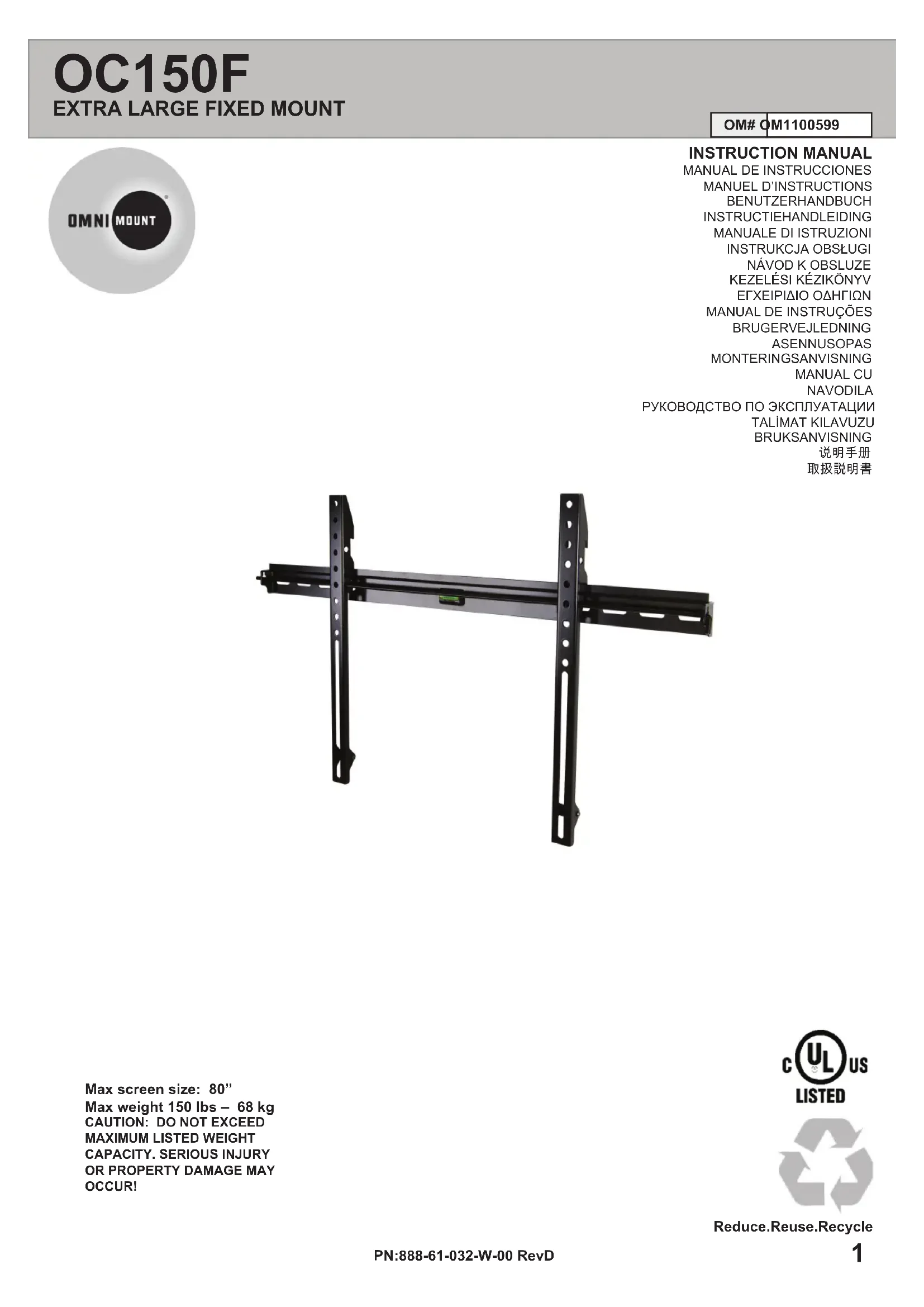 OC150F - Support mural OmniMount - Notice d'utilisation et mode d'emploi gratuit