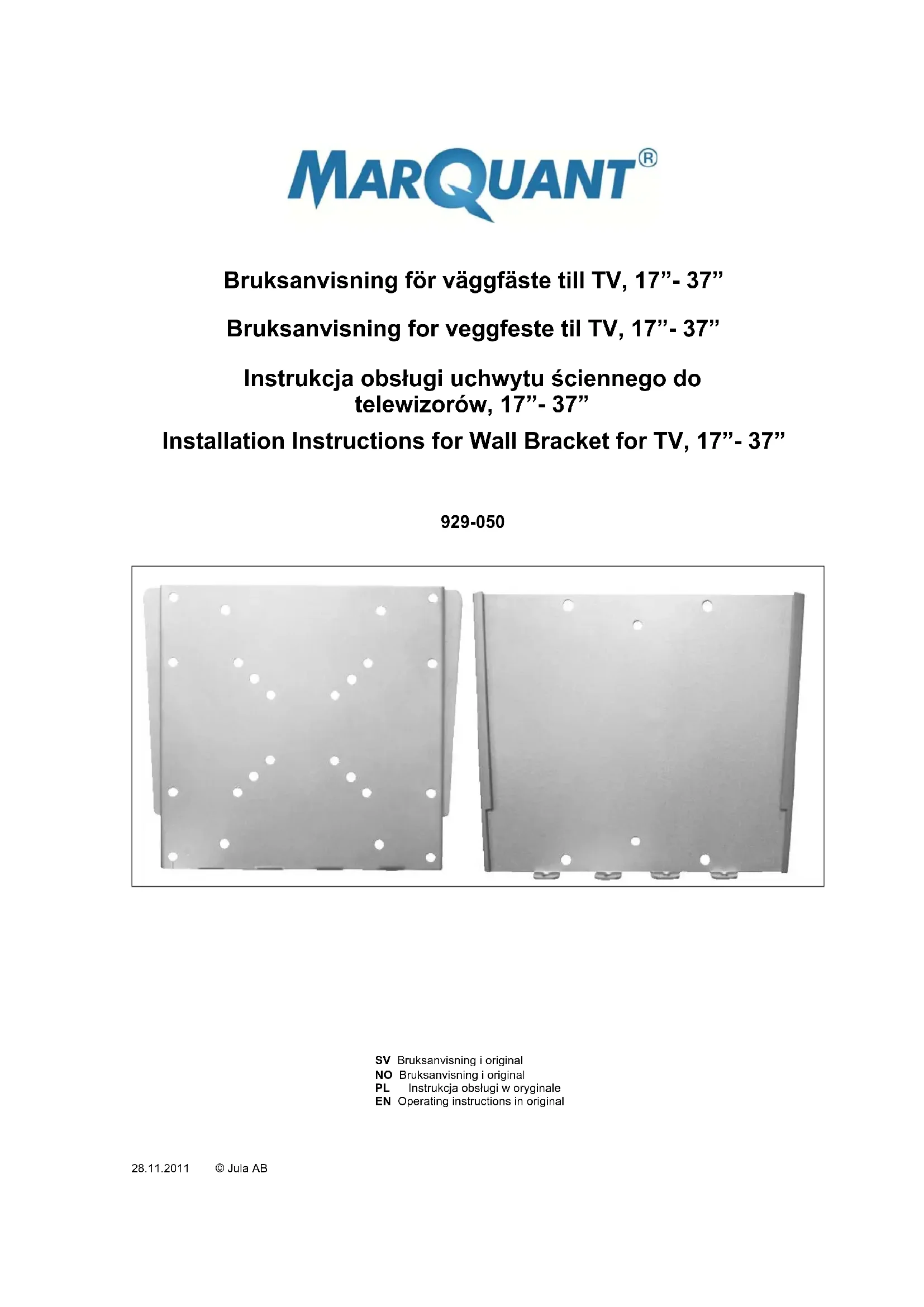 Téléchargez la notice de votre Support mural au format PDF gratuitement ! Retrouvez votre notice 929050 - Marquant et reprennez votre appareil électronique en main. Sur cette page sont publiés tous les documents nécessaires à l'utilisation de votre appareil 929050 de la marque Marquant.