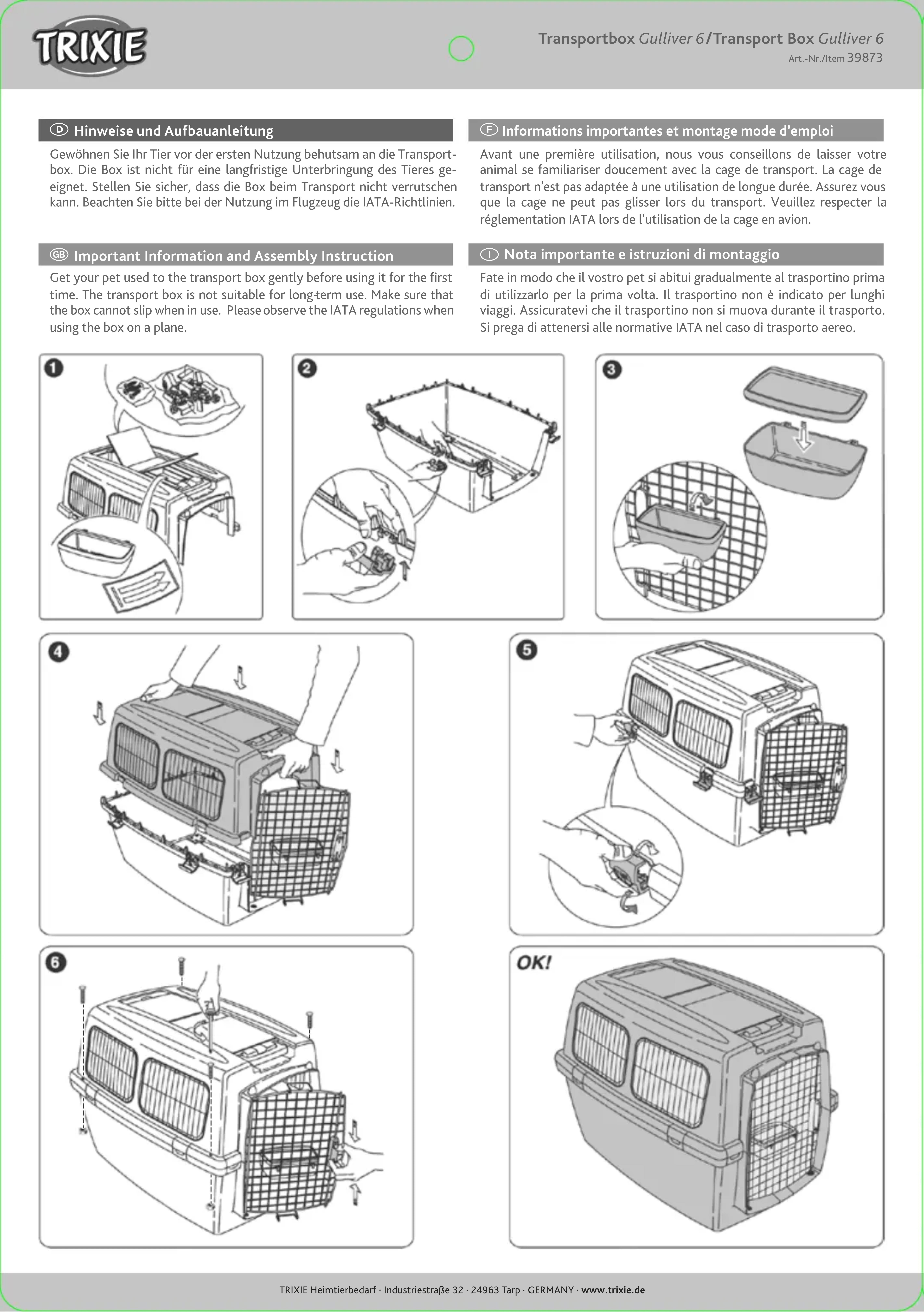 MODE D'EMPLOI Transport box Gulliver 6 Trixie