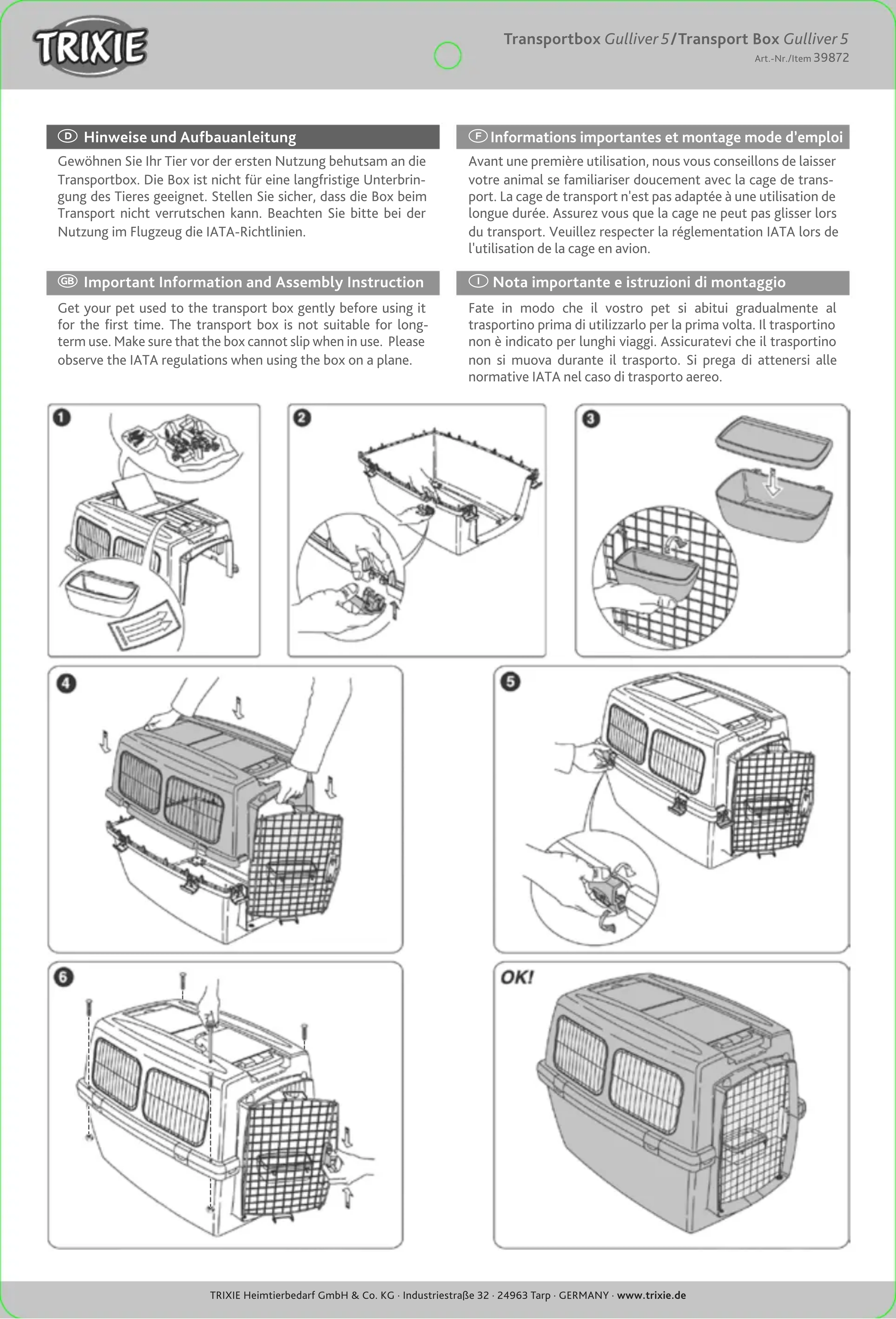 MODE D'EMPLOI Transport box Gulliver 5 Trixie