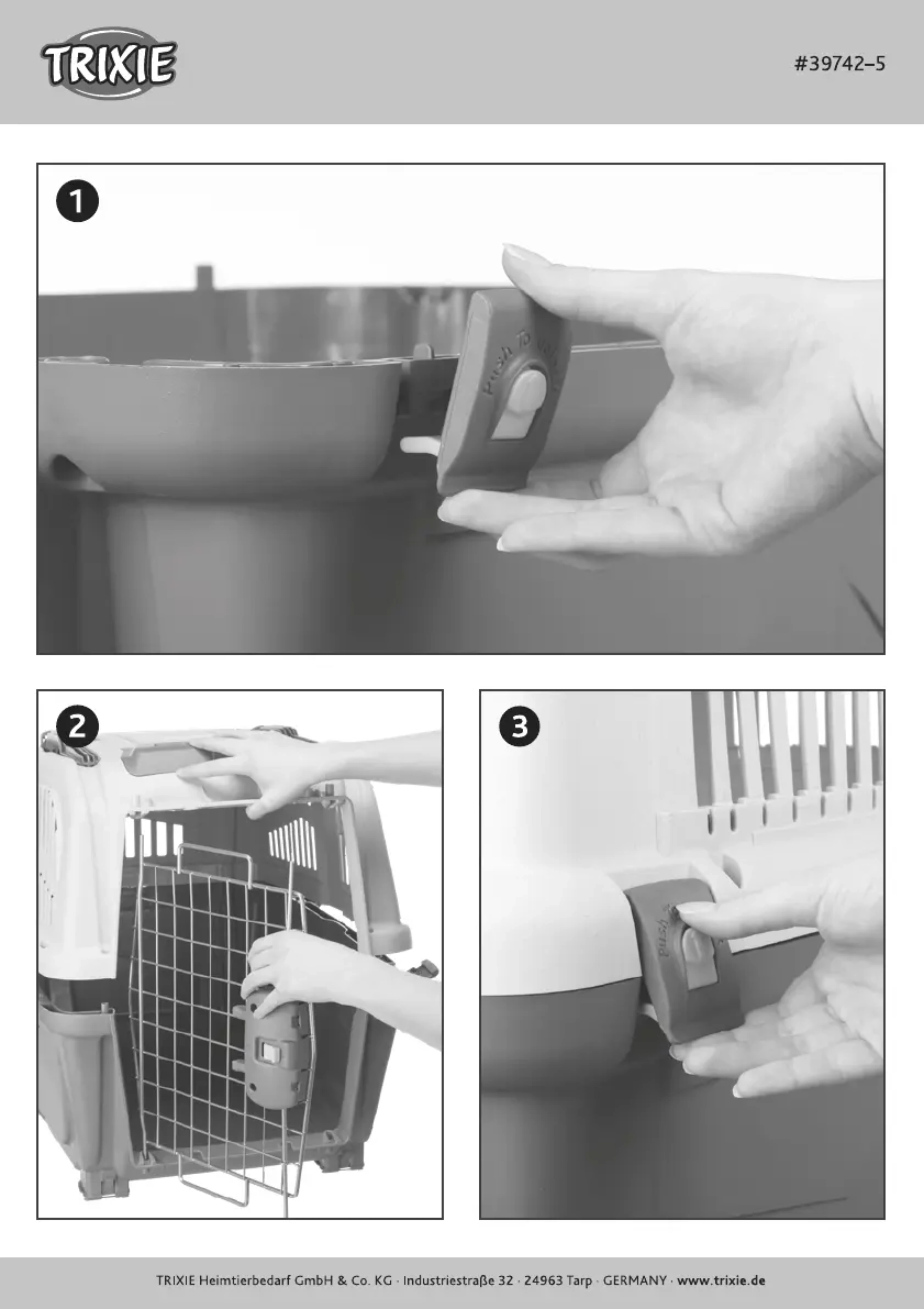 Habituez votre animal à ce produit avec de l'utiliser la première fois. Produit non adapté au long séjour. Placez le box dans le coffre de la voiture appuyé contre les sièges arrirées et assurez-vous que le box ne puisse pas glisser. Veuillez ensuite fixer avec les sangles d'arrimage. Veuillez respecter la règlementation IATA lors de l'utilisation de la cage en avion.