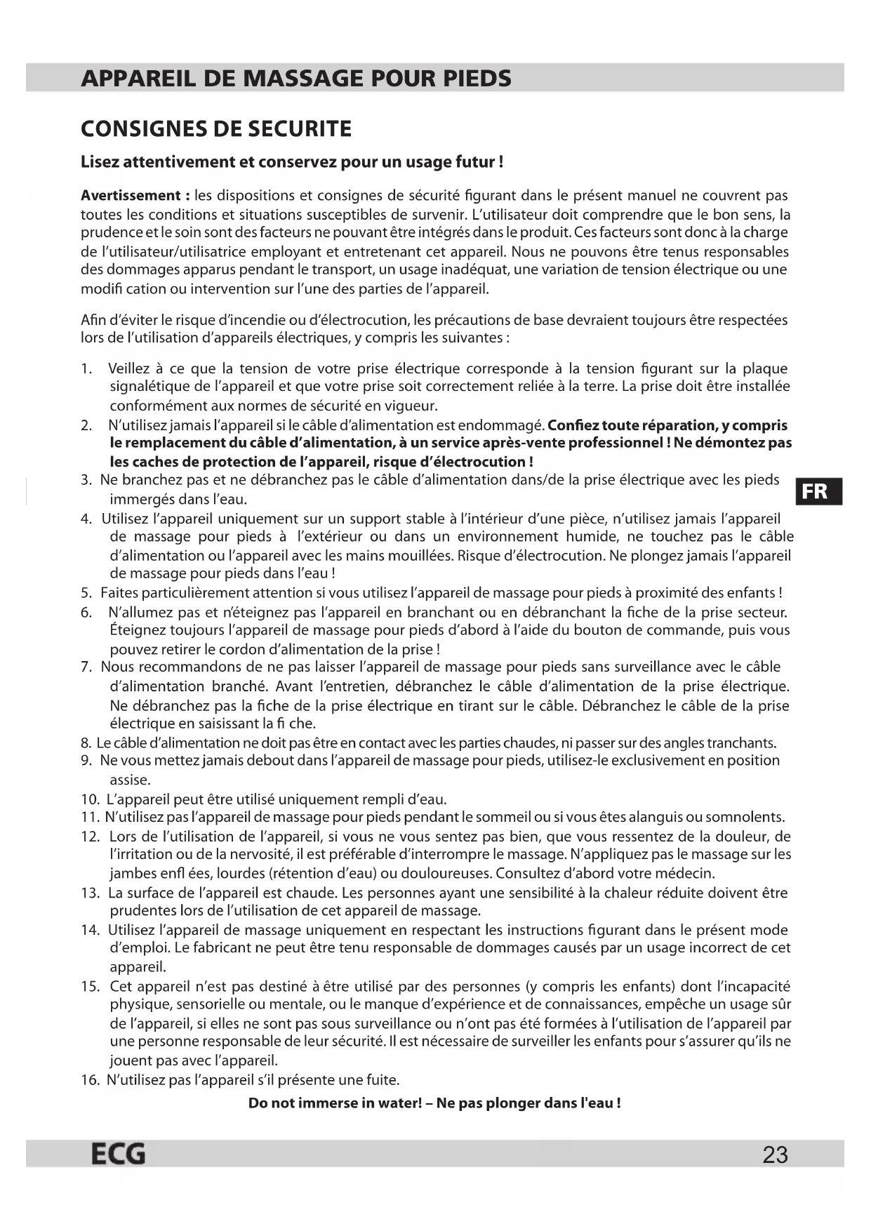MN 103 - Bain de pieds ECG - Notice d'utilisation et mode d'emploi gratuit
