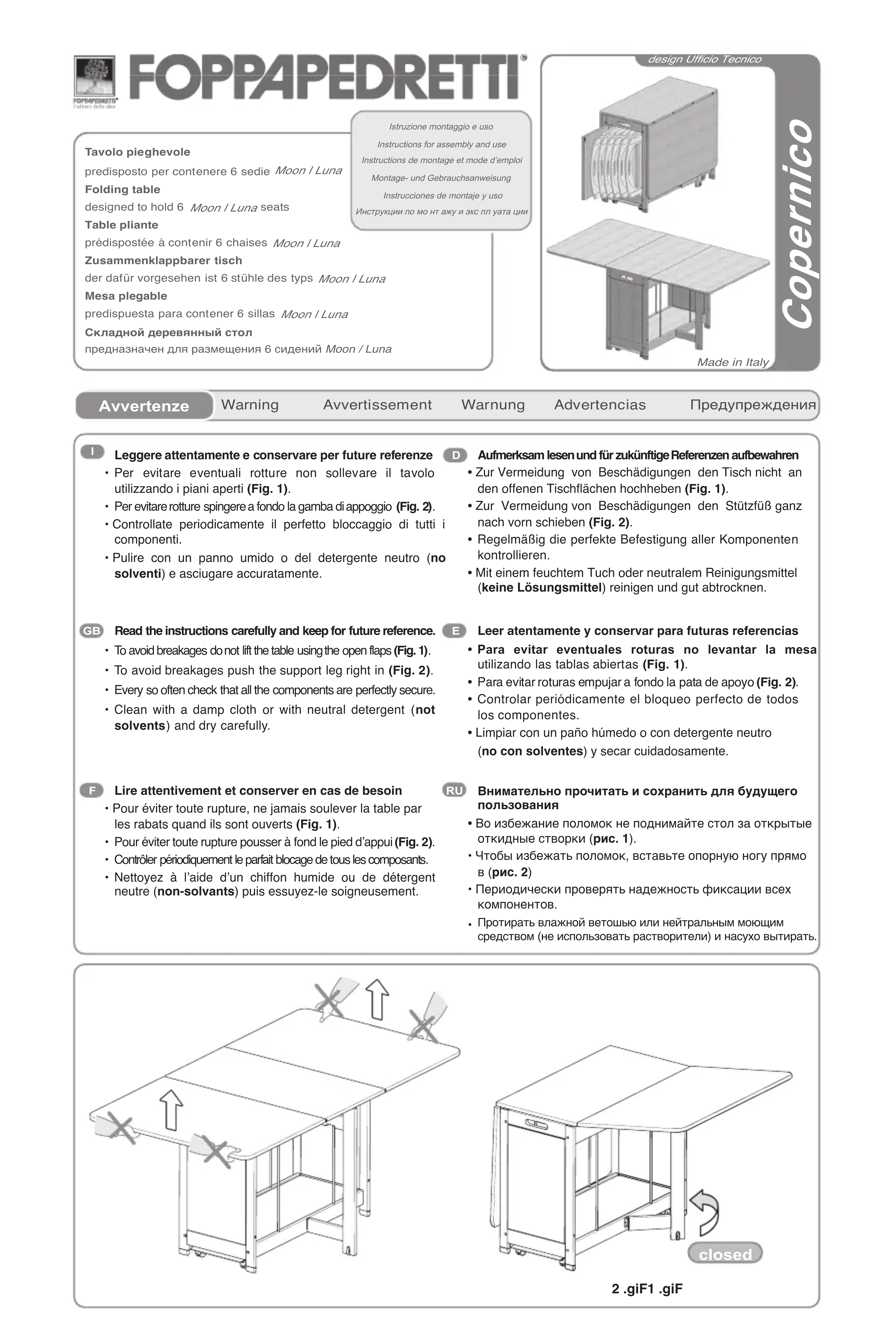 Retrouvez gratuitement la notice de l'appareil Copernico Foppapedretti au format PDF.