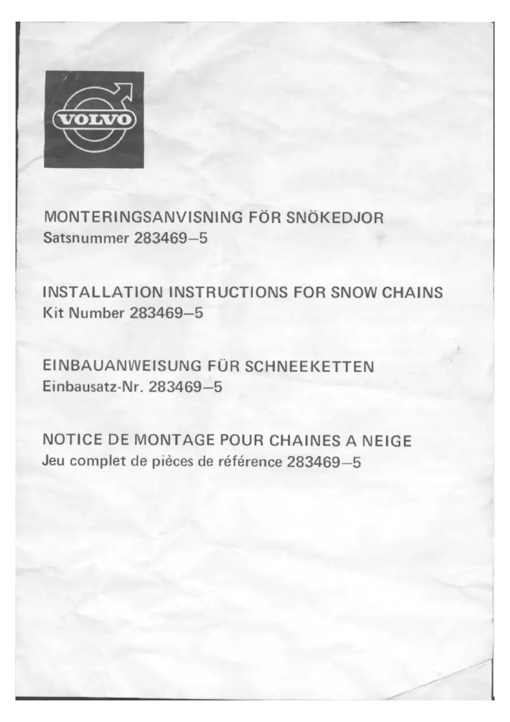 2834695 - Chaîne à neige VOLVO - Notice d'utilisation et mode d'emploi gratuit