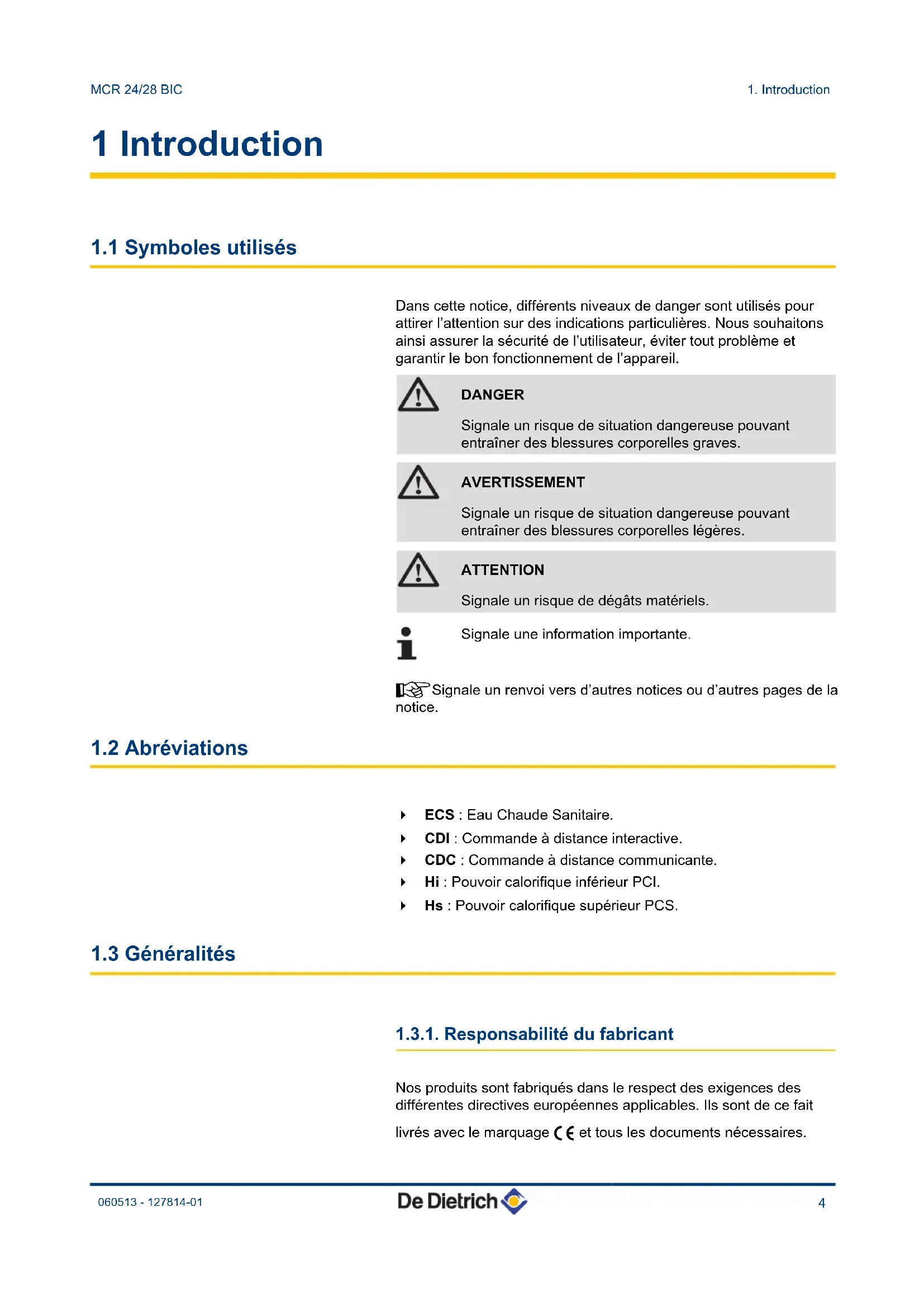 1.3.1 Responsabilité du fabricant .....................................4