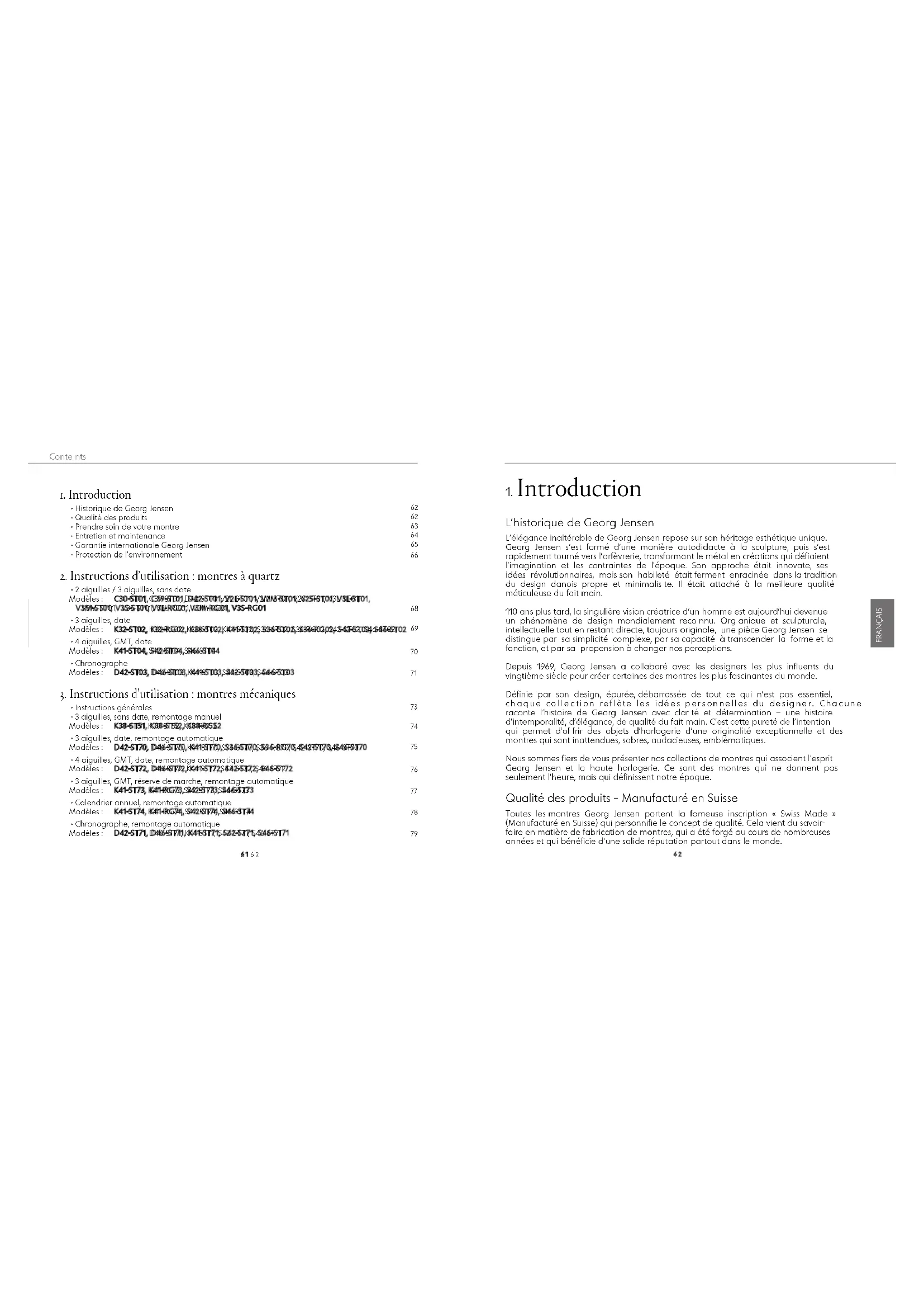 Pendant la période de garantie, et si la montre est accompagnée d'un certificat de garantie valide et de l'original du ticket de caisse de l'intermédiaire ou du reve ndeur agréé Georg Jensen, Georg Jensen remplacera ou rép arera tout composant défectueux résultant d'un défaut de matériel ou de fabrication, comme indiqué par notre équipe technique. Dans le cas où les réparations ne peuvent pas rétablir l'état normal d'utilisation de votre montre Georg Jensen, Georg Jensen garantit son remplacement par une montre Georg Jensen aux caractéristiques identiques ou similaires.