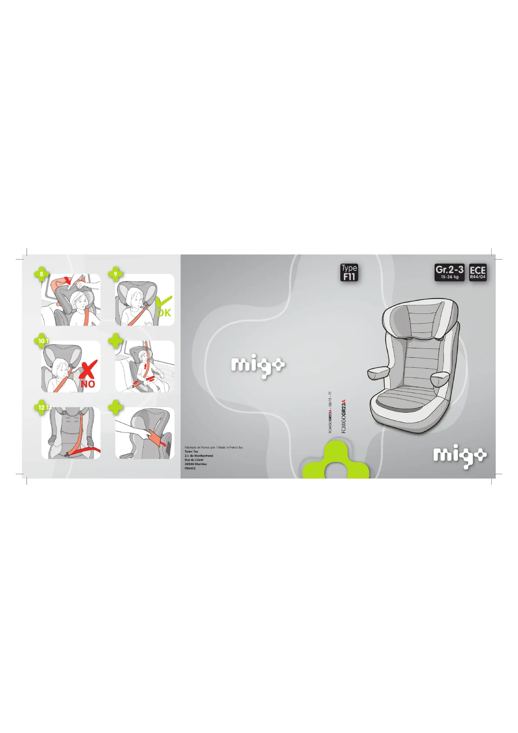 FCMIGOGR23A Fabriqué en France par / Made in France by: Team Tex Z.I. de Montbertrand Rue du Claret 38230 Charvieu FRANCE