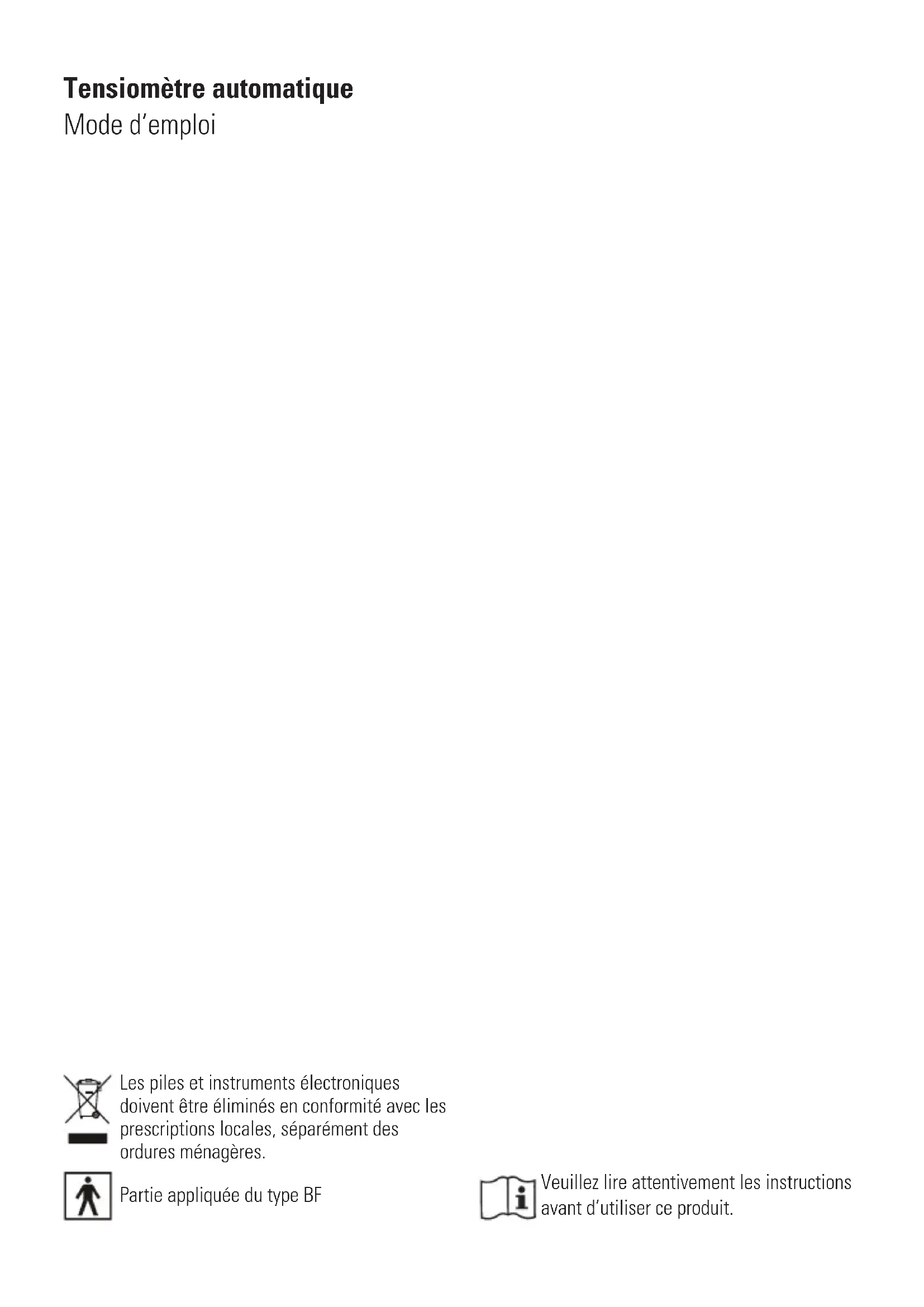 Veuillez lire attentivement ce mode d'emploi avant utilisation puis rangez-le dans un endroit sur. Pour toute autre question concernant la tension arterielle et sa mesure, veuillez vous adresser à votre médecin.