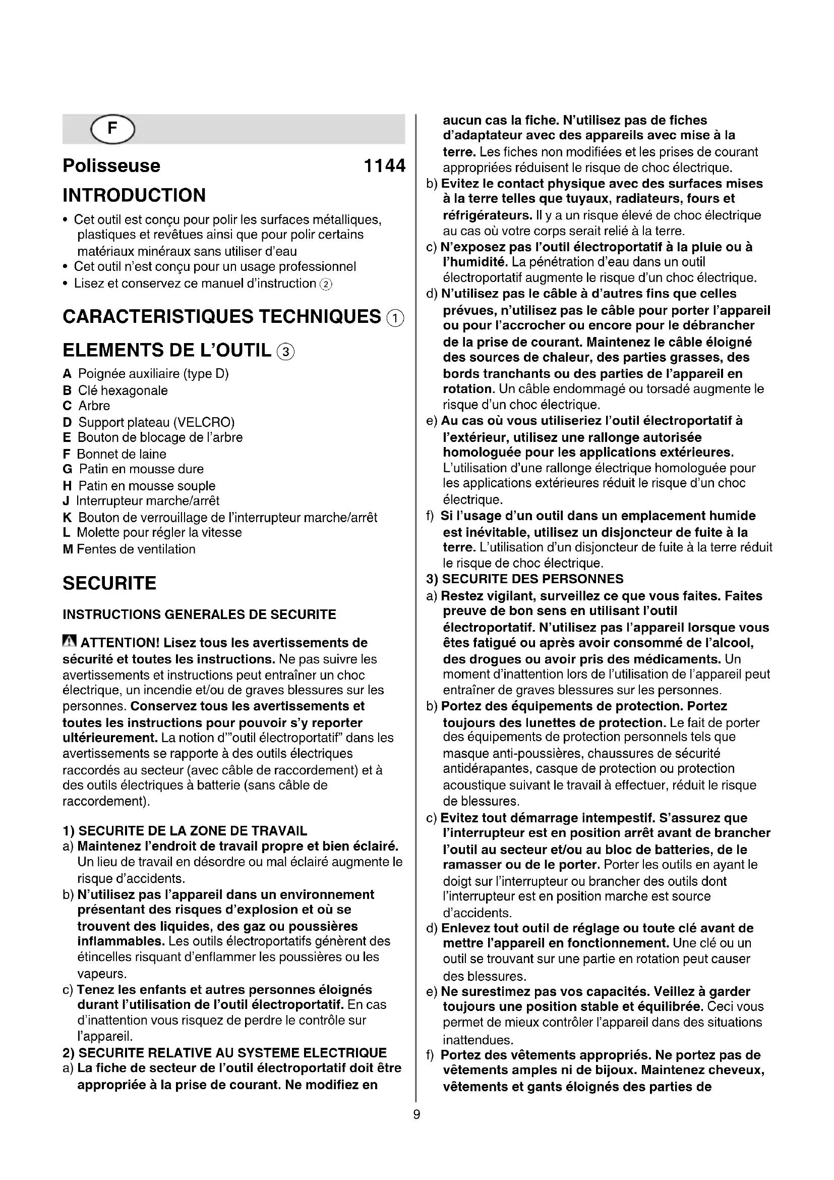 a) Cet outil electroportatif est à utiliser en tant que polisseuse. Respecter tous les averisations, instructions, représentations et données qui sont