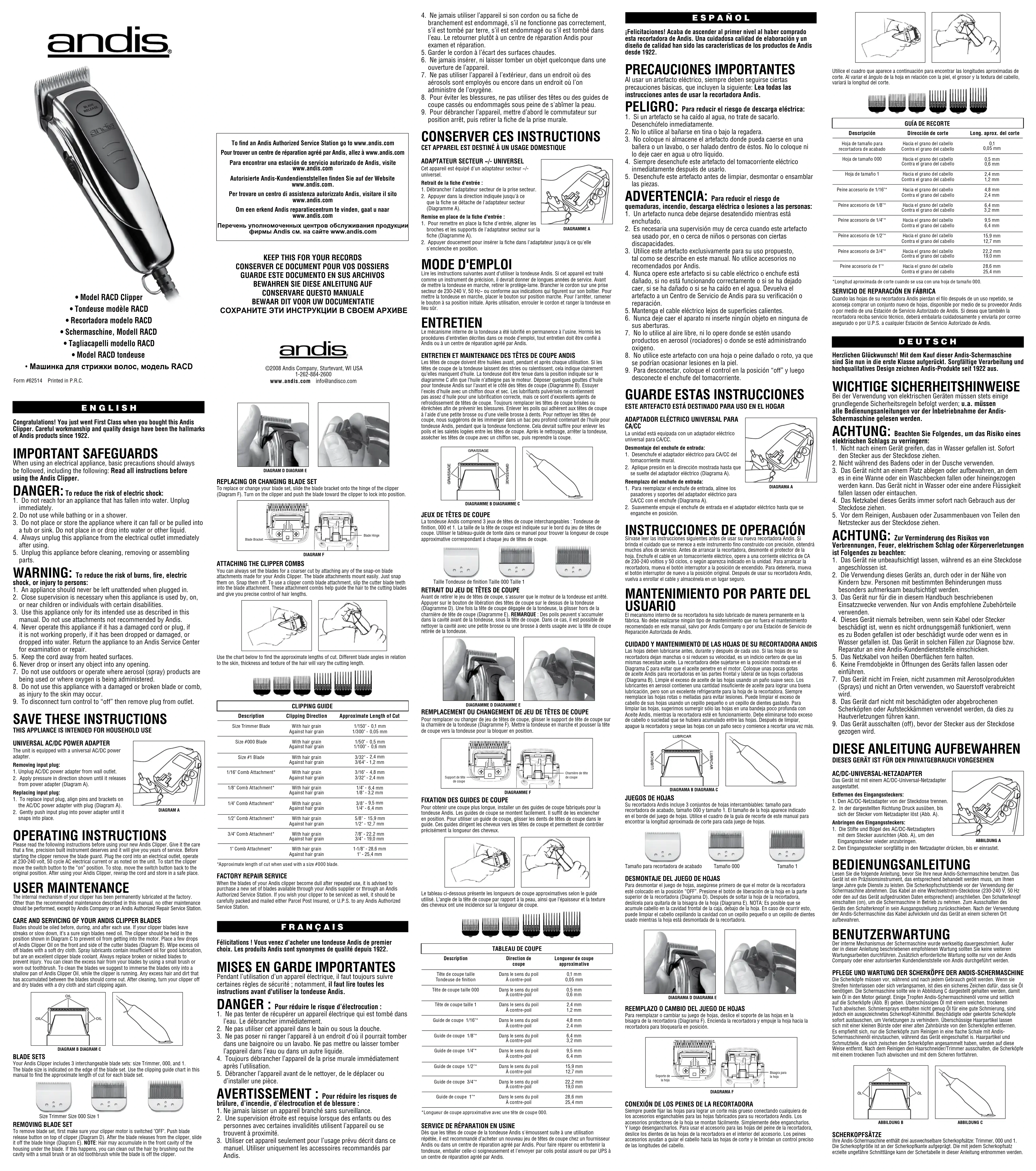 Retrouvez gratuitement la notice de l'appareil RACD Andis au format PDF.