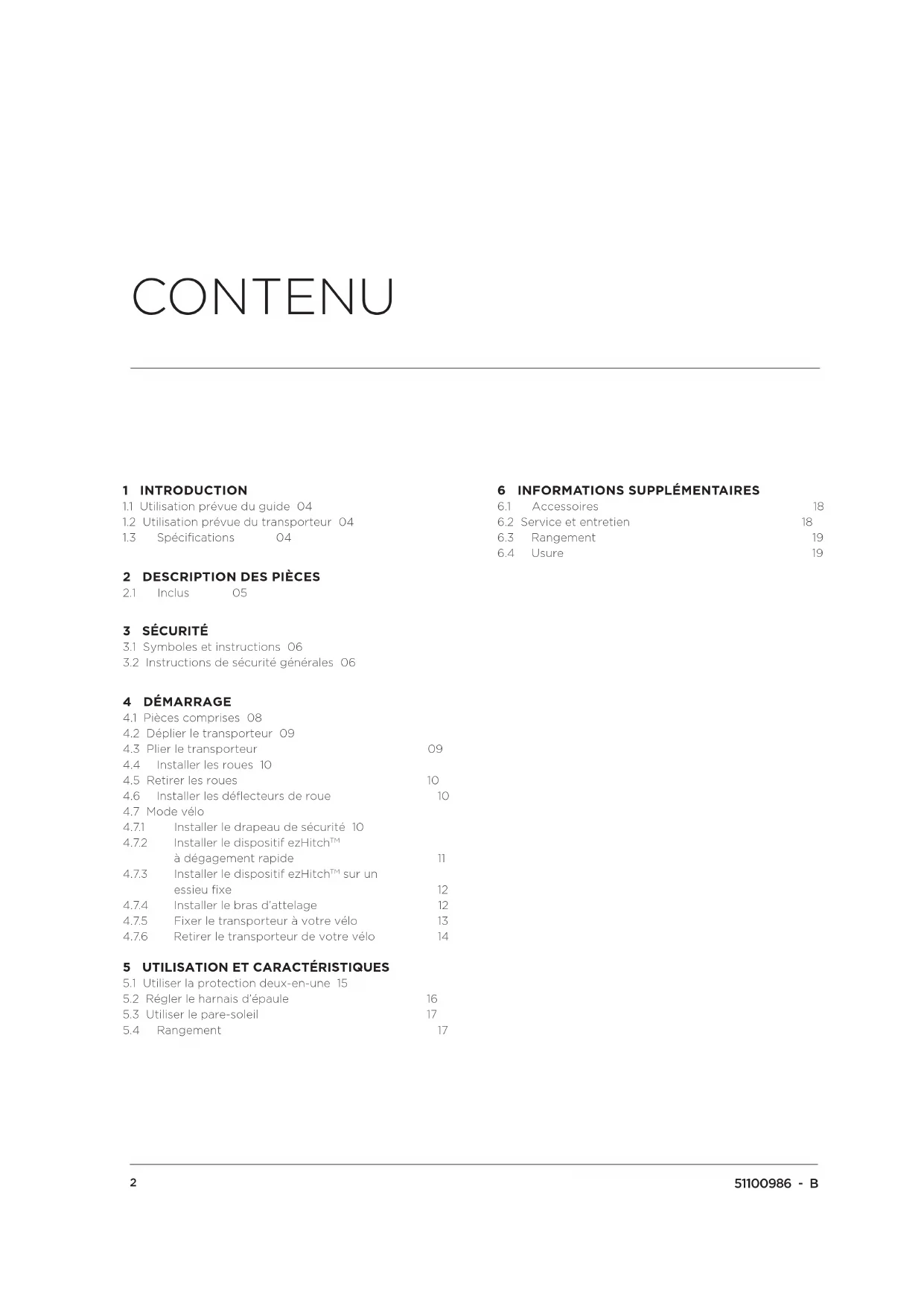 Ce guide est destiné à l'acheteur et à l'utilisateur du transporteur, qui est également responsable de le maintainir en bon état, de veiller à son entretien et d'effectuer les réparations nécessaires.